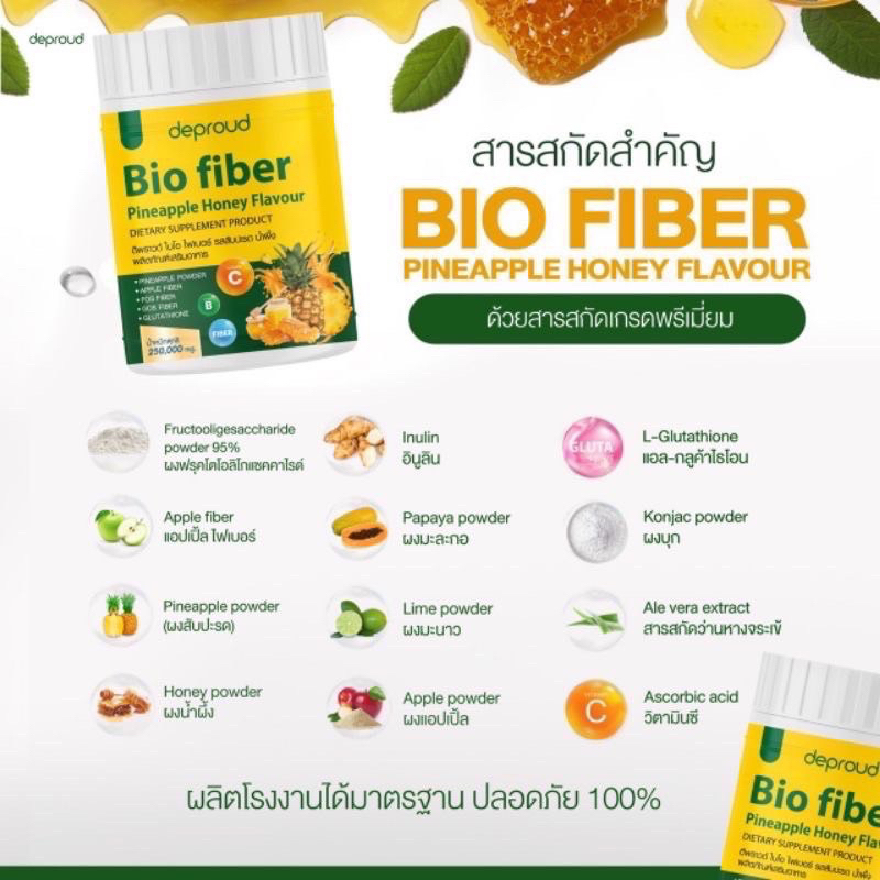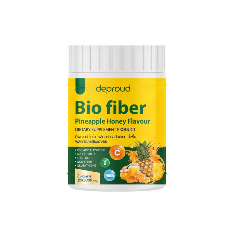 BIO FIBER PINEAPPLE HONEY FLAVOURDeproud Bio Fiber ดีพราว ไบโอ ไฟเบอร์ สัปปะรดผสมกลูต้า ขนาด 250 กรัม