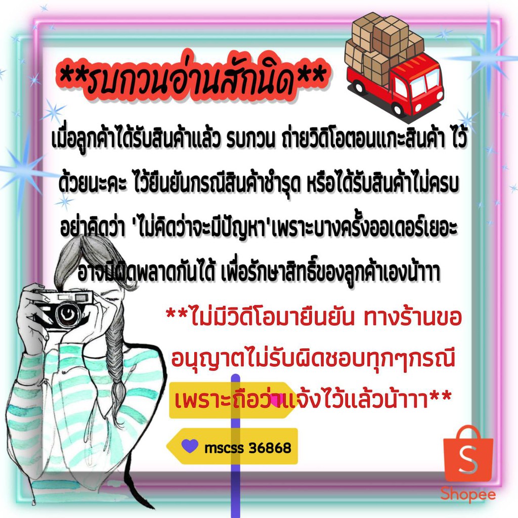 🚨🚨กรณีเปลี่ยน/คืนสินค้า/สินค้าไม่ครบ/สินค้าชำรุด รบกวนลูกค้าถ่ายวิดิโอ ตอนแกะสินค้า แนบมาให้ทางร้านด้วยนะคะ เพื่อง่ายแก่การตรวจสอบ ขอความร่วมมือตรงนี้ อย่าลืมกันนะคะ🚨🚨