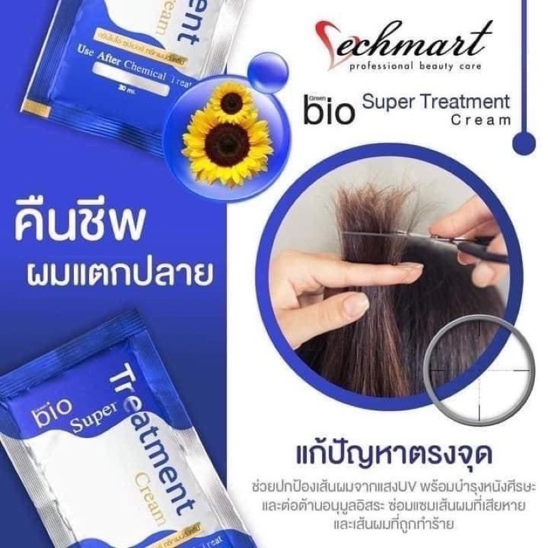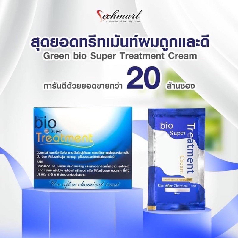 👩🏻🦱[ 1ซอง ] Green Bio super treatment บำรุงเส้นผม 30ml.x1 🪮Green Bio super treatment ผสานคุณค่าจากเคราติน สารสกัดจากไหม และน้ำมันดอกทานตะวัน ช่วยปกป้องเส้นผมจากแสง UV ด้วยคุณลักษณะเนื้อครีมที่สามารถซึมลึกสู่เส้นผมได้ ช่วยปรับสภาพเส้นผมหลังการยืด ดัด ย้อม ให้เส้นผมคืนสู่สภาพสมดุล ดูเป็นธรรมชาติโดยไม่ต้องอบไอน้ำ พร้อมบำรุงหนังศีรษะและต่อต้านอนุมูลอิสระ ช่วยซ่อมแซมเส้นผมที่เสียหายและถูกทำลาย ให้กลับมาเงางามสุขภาพดีอีกครั้ง