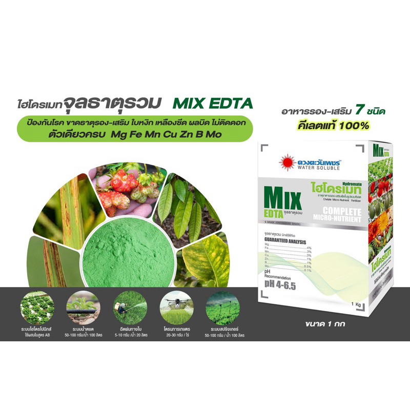 ไฮโดรเมท มิกซ์ 1 กิโลกรัม ตราดวงตะวันเพชร จุลธาตุรวม7ชนิด คีเลตแท้100% ป้องกันและรักษาอาการขาดธาตุ ช่วยให้ใบเขียวใบเข้มMg 4%