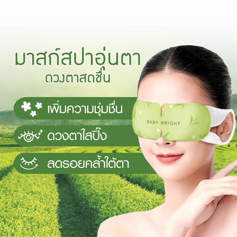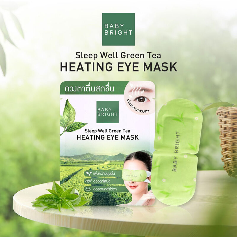 Baby Bright Sleep Well Green Tea Heating Eye Mask 1 Sheet บำรุงด้วยฮีตติ้งอายมาสก์ ดูแลผิวรอบดวงตาอย่างอ่อนโยน เสมือนการทำสปาดวงตาง่ายๆ ที่บ้าน อุณหภูมิอุ่นพอเหมาะของแผ่นอายมาสก์ ไม่เป็นอันตรายต่อดวงตา บำรุงผิวรอบดวงตาให้ดวงตากลับมาสดใส พร้อมผ่อนคลายด้วยน้ำมันหอมระเหยจากธรรมชาติ กลิ่นชาเขียว ช่วยให้นอนหลับสบาย พักสายตาได้อย่างเต็มที่• กลิ่นชาเขียว ช่วยให้นอนหลับสบาย พักสายตาได้อย่างเต็มที่