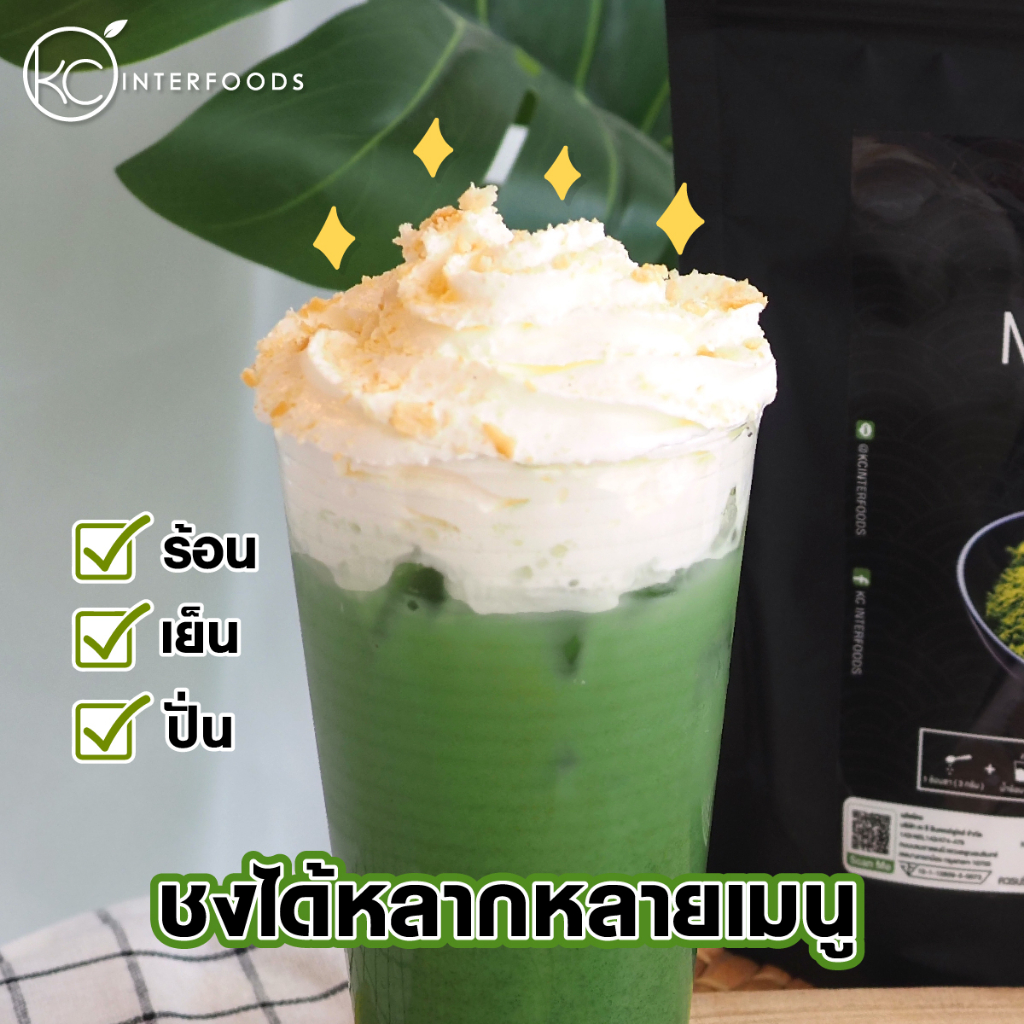 ✅ นำไปเป็นส่วนผสมในเครื่องดื่มเสริมอาหาร เพิ่มกลิ่น และรสชาติมัทฉะ เช่น เวย์โปรตีนรสชาเขียวมัทฉะ