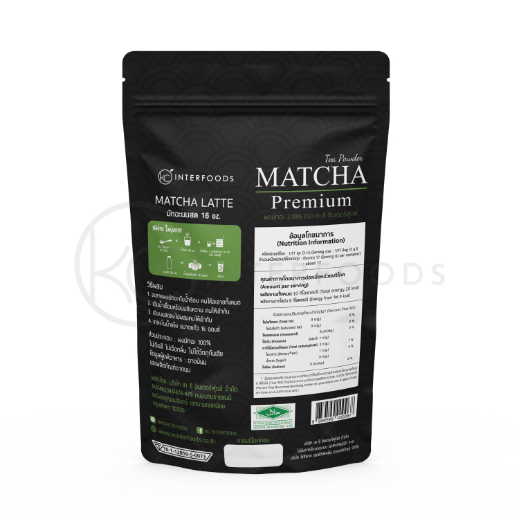 ผงชาเขียวมัทฉะ สูตรพรีเมียม (Matcha Green Tea Powder) ของเคซี ผงชาเขียวมัทฉะ 100% ของเราผลิตจาก“ยอดใบชา” แท้ในฤดูกาลที่สอง (Second harvest) ถูกนำมาผ่านกระบวนการนึ่งเพื่อคงรสชาติและคงสีเขียวของชาเขียวเอาไว้ ผงชาเขียวมัทฉะมีความละเอียดกำลังดี เมื่อนำไปชงจะสัมผัสได้ถึงความละเมียดละไมของผงมัทฉะ สีของชาจะมีสีเขียวเข้มหม่นพร้อมกลิ่นหอมละมุนโทนสาหร่ายตามฉบับมัทฉะจีน🍃