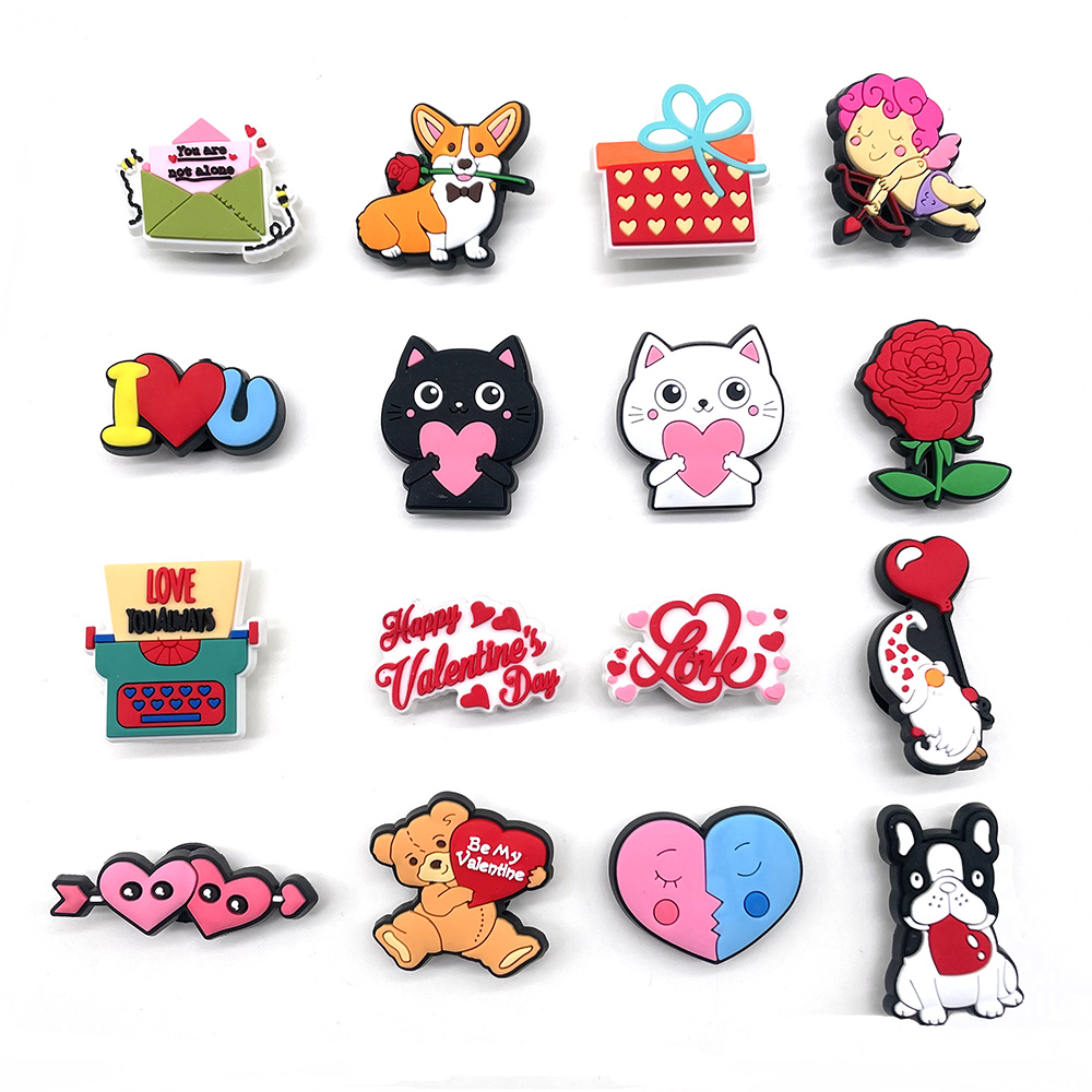 16 chiếc cái/bộ hình trái tim tình yêu Croc quyến rũ trang trí Giày Phụ kiện trẻ em Quà Tặng Phụ Kiện Ba lô người lớn tiệc tùng
