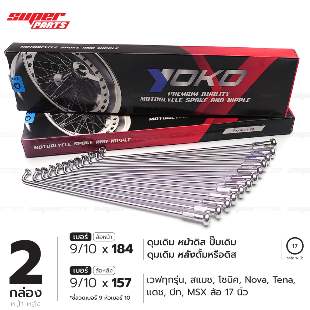- เบอร์ 9/10x157 และ 9/10x184 (ซี่ลวดโตเบอร์ 9 หัวซี่ลวดเดิมเบอร์ 10 ไม่ต้องเจาะวงล้อ)- ** ใส่ดุมขนาดเดิม ดุมหน้าดิส ปั๊มเดิม / ดุมหลัง ได้ทั้งดิสดั้ม / วงล้ออลู 17 นิ้ว **