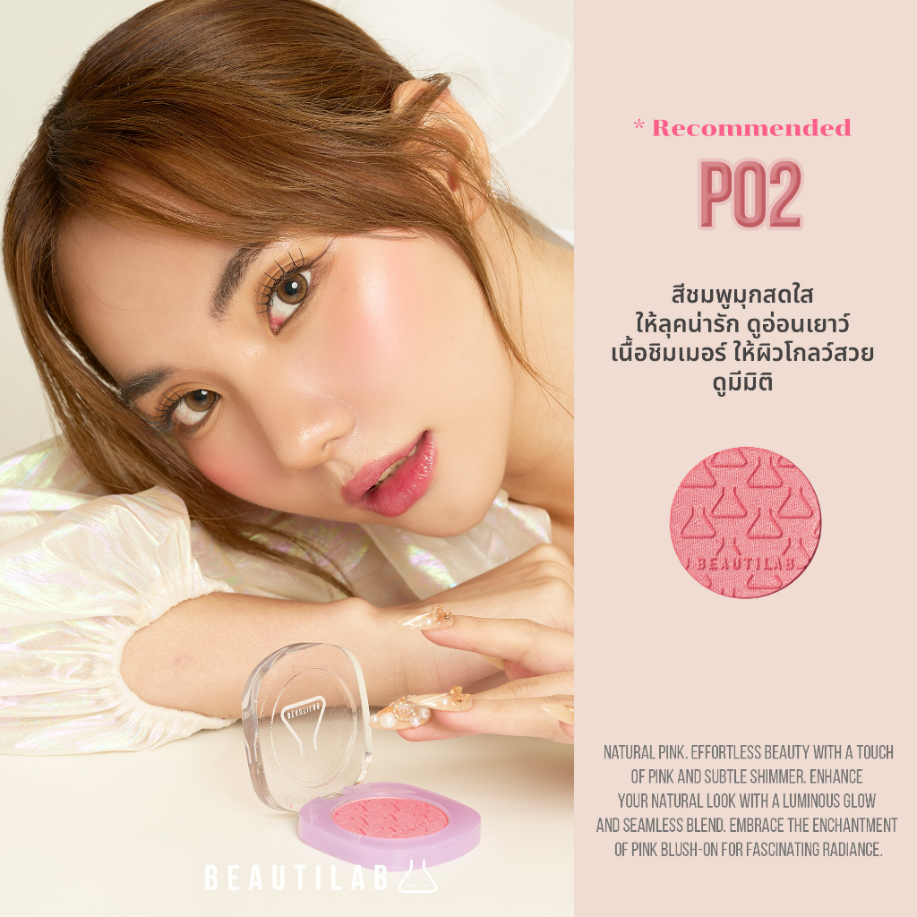P02 สีชมพูมุกสดใส เนื้อชิมเมอร์ ให้ลุคน่ารักดูอ่อนเยาว์ ผิวโกลว์สวย ดูมีมิติ
