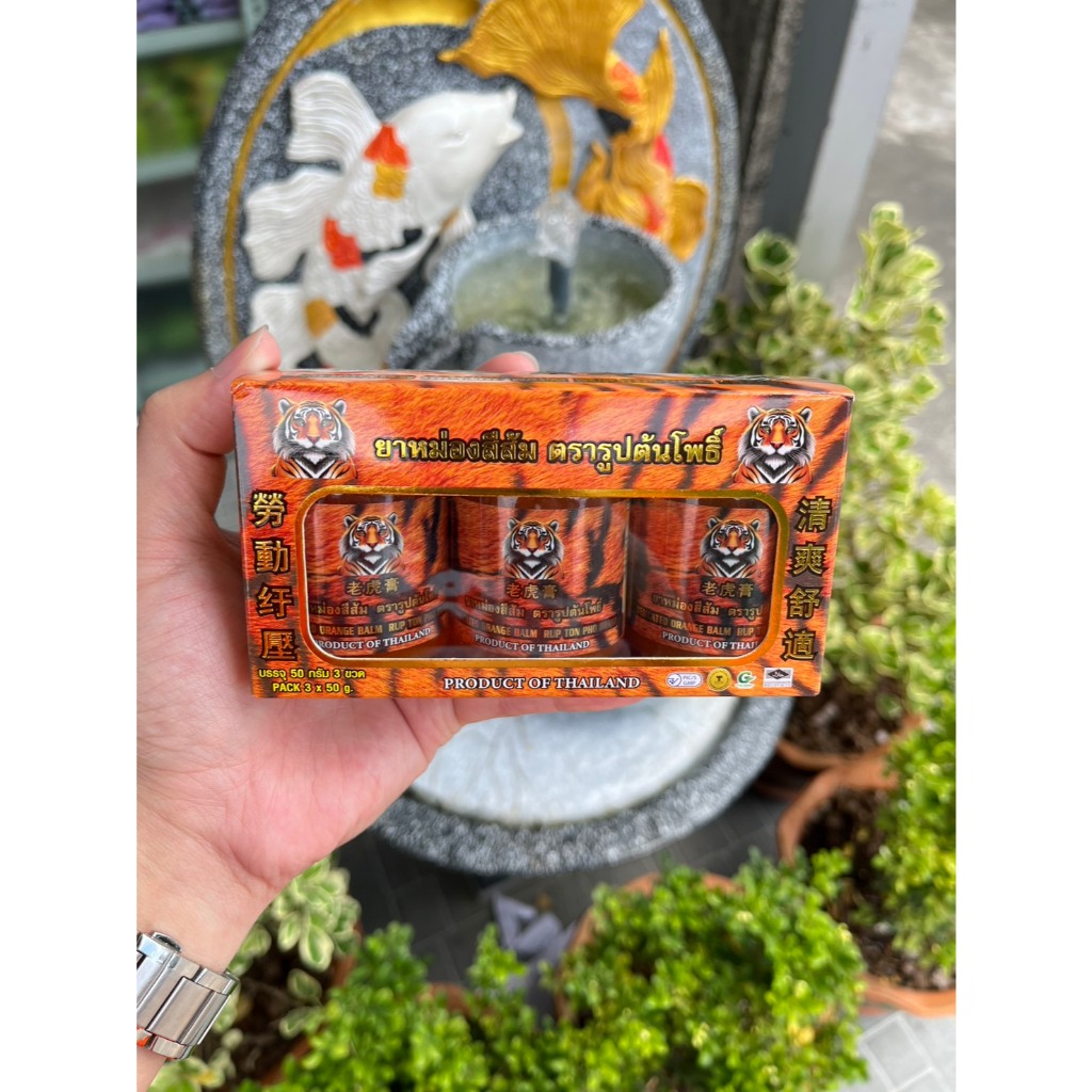 [3ขวด/15/50กรัม]ยาหม่องสีส้ม ตรารูปต้นโพธิ์ ยาหม่องสมุนไพร MEDICATED ORANGE BALM RUP TON PHO BRAND
