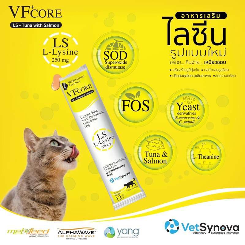 [30 ซอง] VFcore แมวเลีย วิตามินแมว อาหารเสริม ไลซีน วิตามินรวม*สีเหลือง/ทอง (08/2024) แถมฟรี!! สีแดง 3 ซอง (04/2024) ต่อ 1 กล่อง*