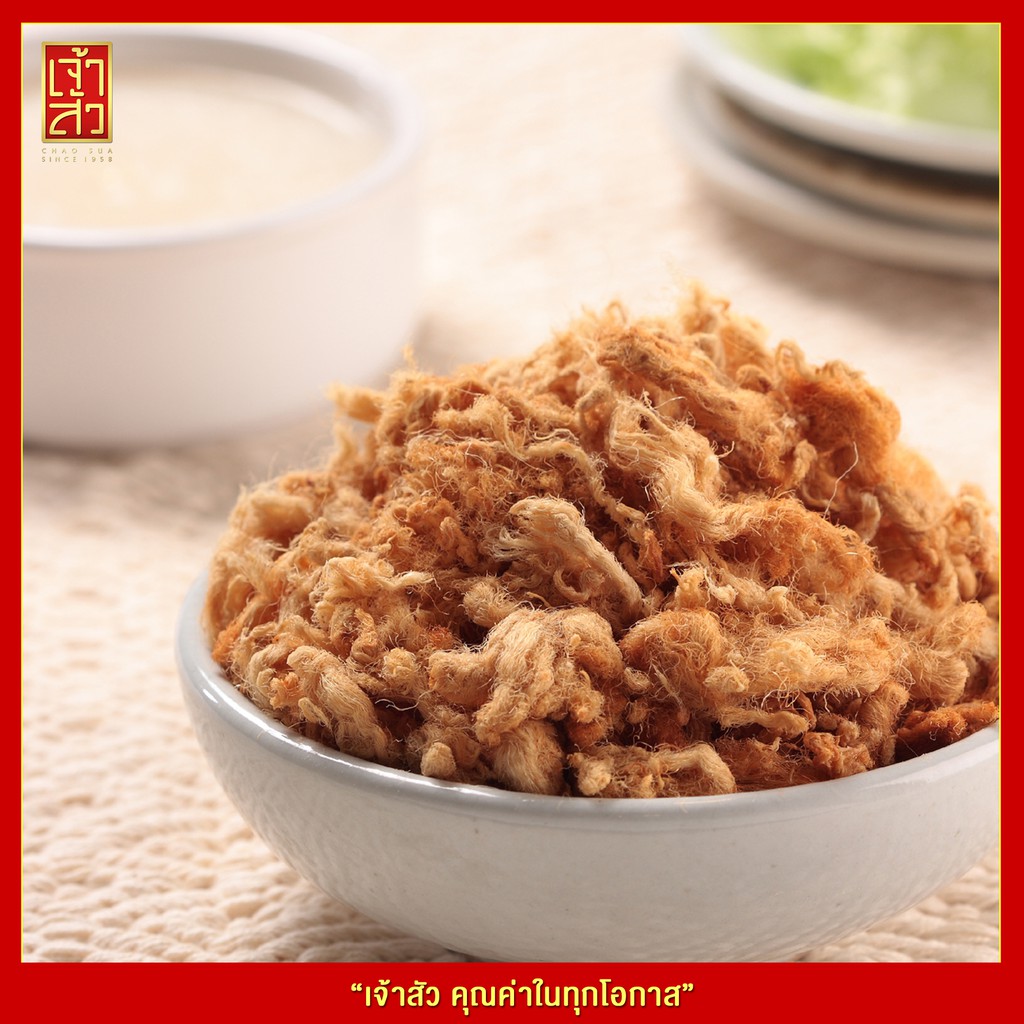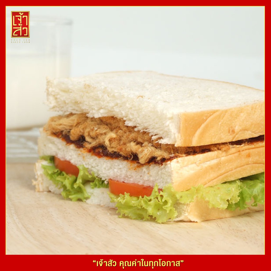 เจ้าสัว หมูหยองกระปุก 320 กรัมต้นตำรับเชื่อถือได้นานกว่า 55 ปี เคล็ดลับของความอร่อย เมนูง่ายๆ ทำเองเพียงนำขนมปังแซนวิช ทาด้วยน้ำพริกเผาแบบฉบับไทยๆ หรือทาด้วยมายองเนสให้ทั่วแผ่น นำหมูหยอง "เจ้าสัว" วางบนขนมปังเพียงเท่านี้ ก็ได้ลิ้มรสความอร่อยกันทั้งครอบครัว