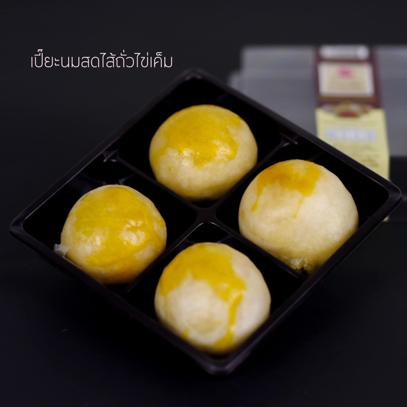 เปี๊ยะอบเทียน ถั่วไข่เค็ม 4 ชิ้น ของร้านเค้กหนองพงนก-ถั่วไข่เค็ม แน่นๆ