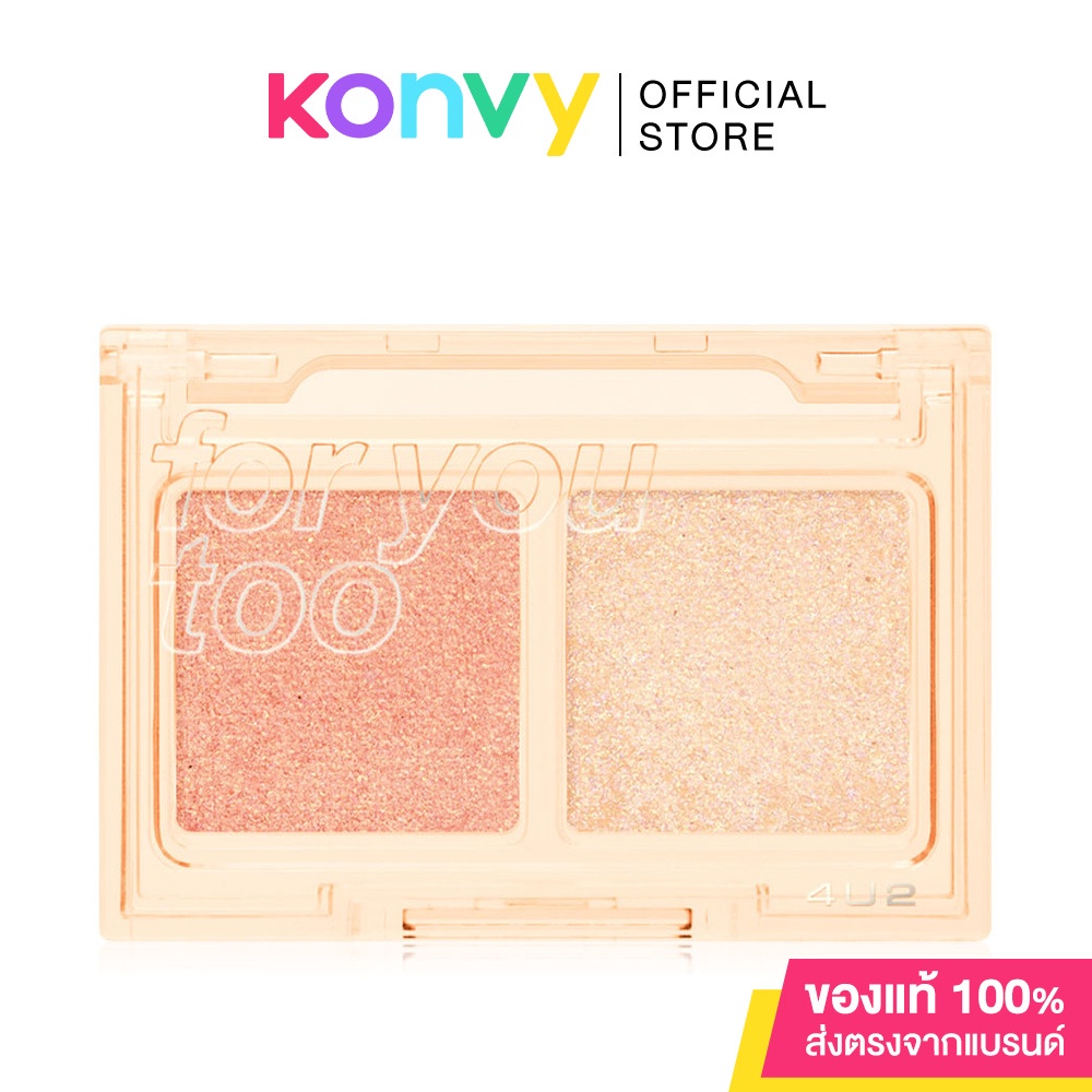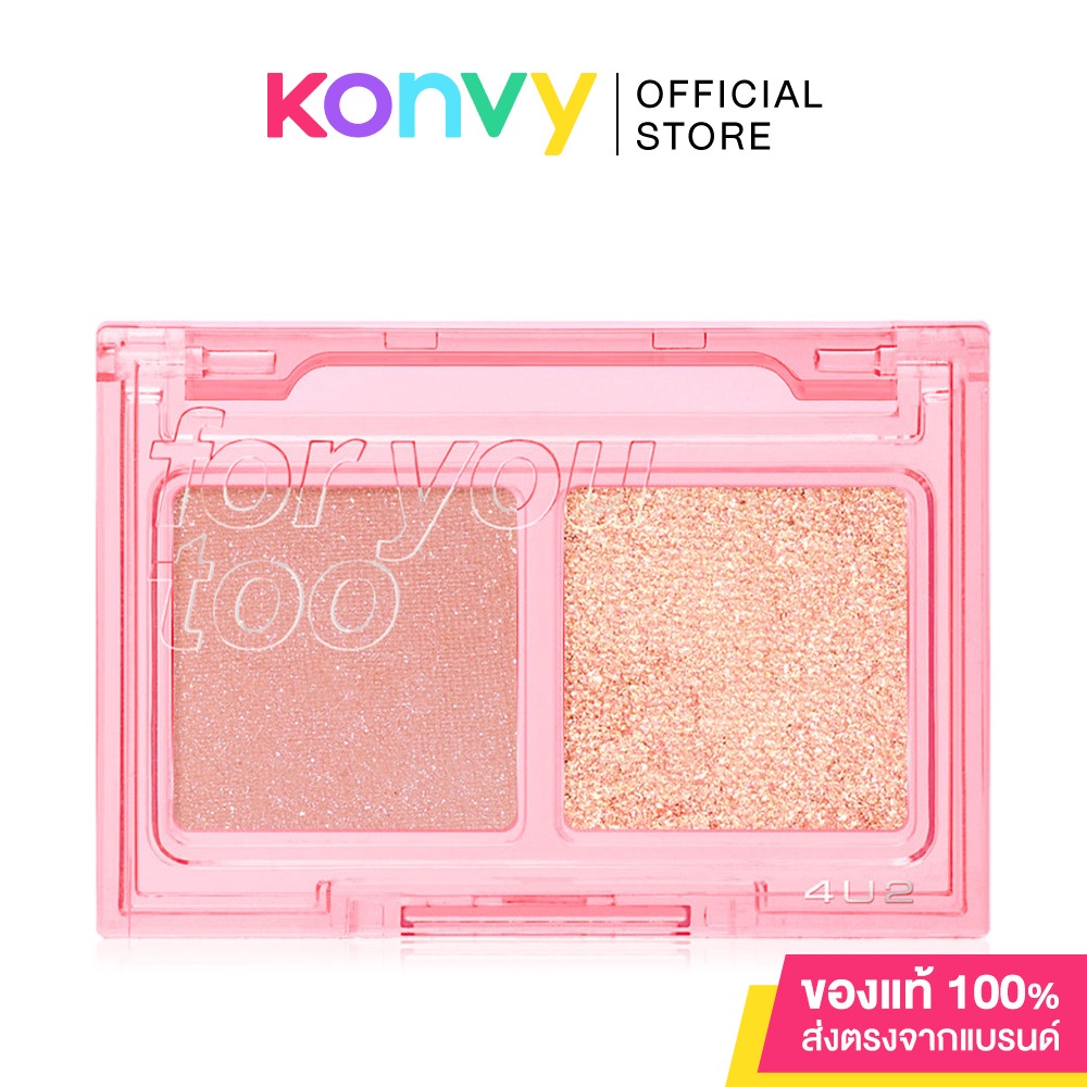 4U2 For You Too Eyeshadow 1.8g #01 What'S Up?อายแชโดว์เนื้อแมทและเนื้อเจลลี่ นุ่มลื่น บางเบา ด้วยอณูแป้ง Splendid Soft Touch มาพร้อมกลิตเตอร์รูปแบบพิเศษ ให้ความโปร่งแสงสูง ด้วยเทคโนโลยี Glow Glory Jewel ช่วยให้เนื้ออายแชโดว์วิ้งค์ เปล่งประกาย เม็ดสีชัด ติดทนไม่หลุดร่วงระหว่างวัน•เนื้อนุ่มลื่น บางเบา