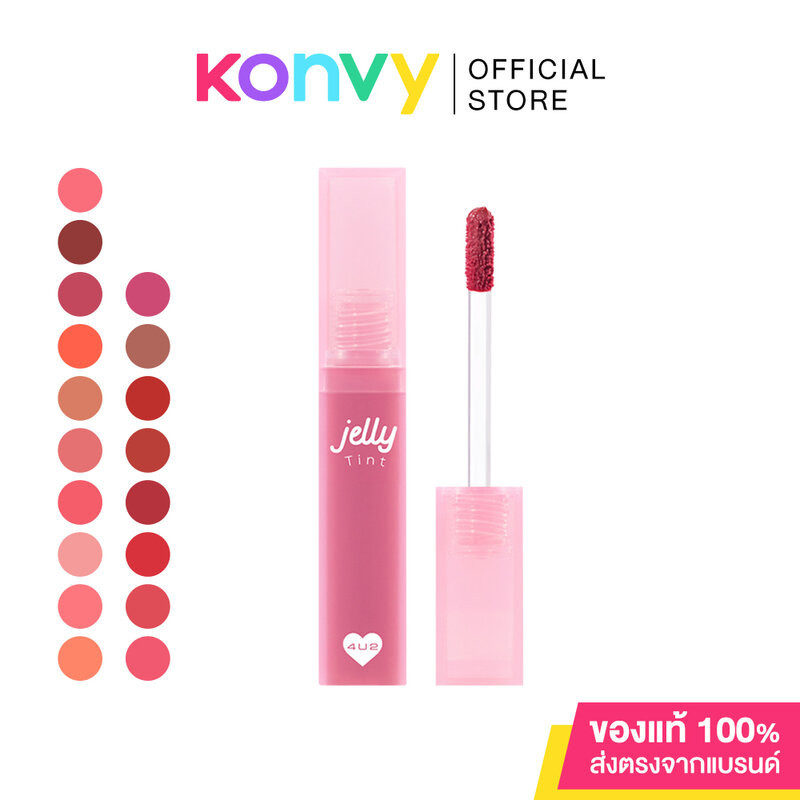 4U2 Jelly Tint 4g #04 Juicy Freshลิปทินท์เนื้อเจลลี่ เนียนนุ่มละมุนบนริมฝีปาก ให้สีสวยสดชัดแนบเนียนสนิท ด้วยเทคโนโลยี Air Soft Flex Film ที่ช่วยสร้างชั้นฟิล์มสัมผัสนุ่มละมุนเคลือบริมฝีปากแบบแนบสนิท ให้สีลิปทินท์ติดทนนาน พร้อมมอบความชุ่มชื่น เปล่งปลั่งให้กับริมฝีปากได้อย่างมีประสิทธิภาพ• เนื้อเจลลี่เนียนนุ่มละมุนบนริมฝีปาก