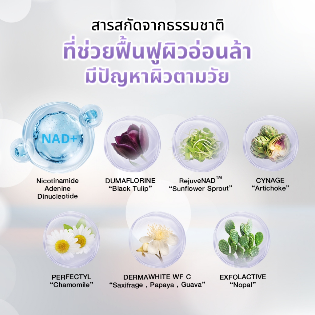 สูตรนี้ถูกออกแบบมาเพื่อช่วยให้ผิวที่ดูอ่อนล้า ขาดความสดใส หรือมีสัญญาณแห่งวัยที่มองเห็น