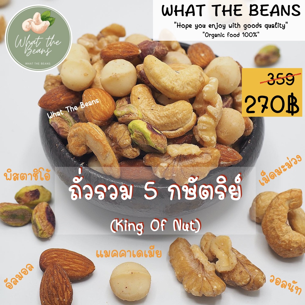 ✅ถั่วรวม 5 กษัตริย์ (King of Nut) ถั่วพรีเมียม ธรรมชาติ ไม่ใส่เนย