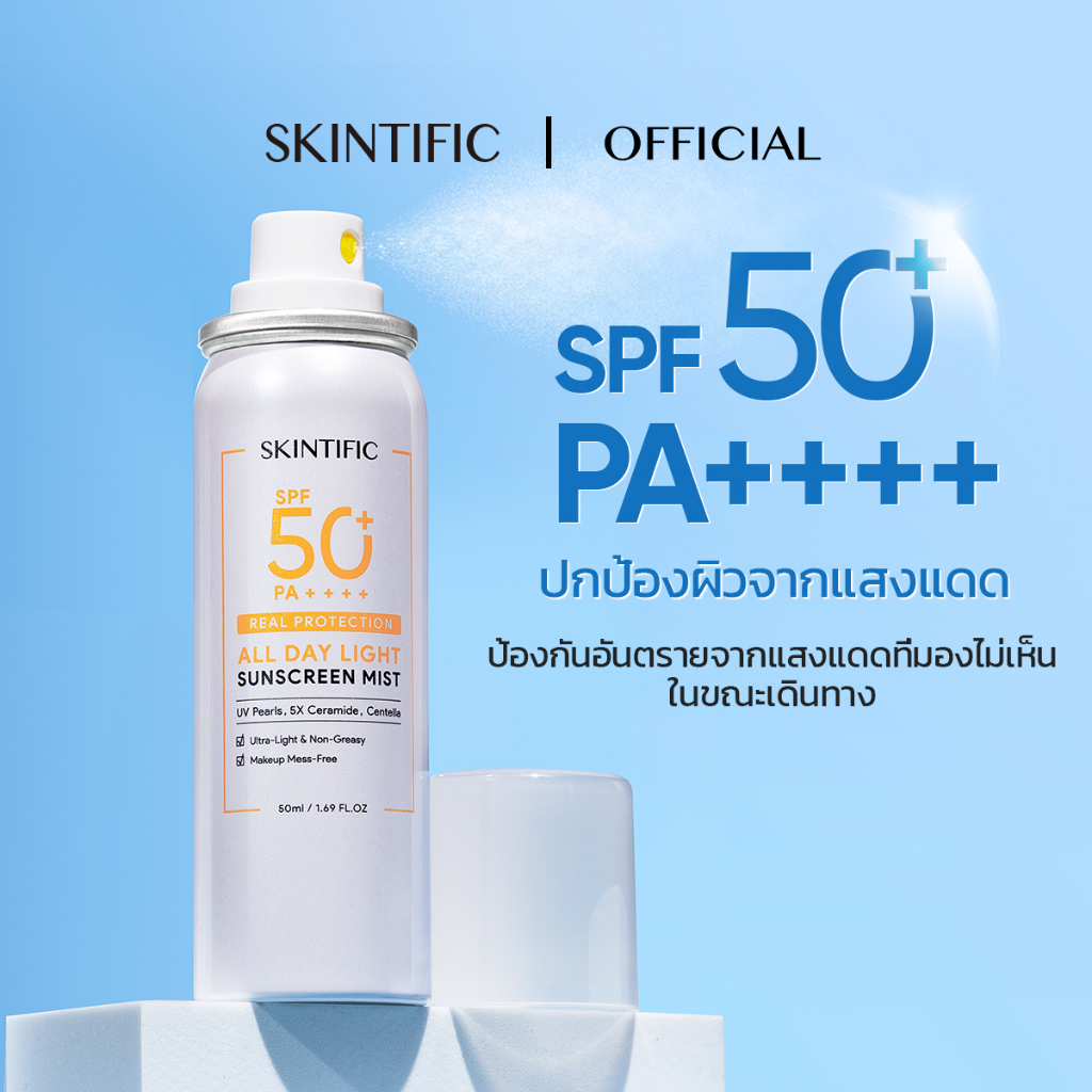 SKINTIFIC All Day Light Sunscreen Mist SPF 50 PA++++SKINTIFIC ออลเดย์ไลท์ สเปรย์ กันแดด 50 พีเอ++++