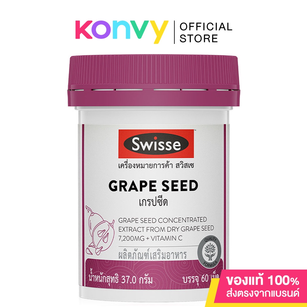 SWISSE Beauty Grape Seed 60 Tabletsผลิตภัณฑ์เสริมอาหารสารสกัดจากเมล็ดองุ่น และมีวิตามินซีส่วนประกอบสำคัญใน 1 เม็ด ประกอบด้วย