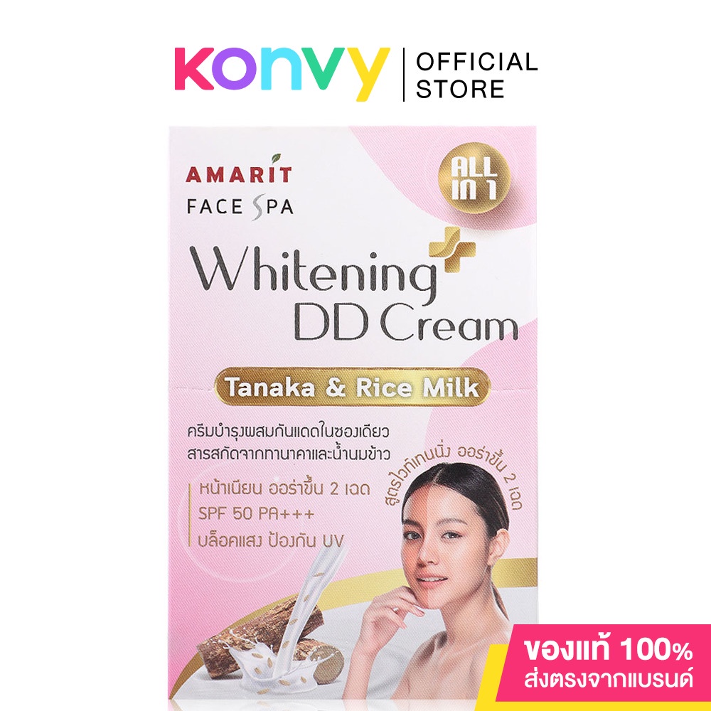 AMARIT Whitening DD Cream Tanaka [8ml x 6pcs]ผลิตภัณฑ์บำรุงผิวหน้าไวท์เทนนิ่งดีดีครีม อุดมสารสกัดทานาคาและน้ำนมข้าวบำรุงให้ผิวเรียบเนียนน่าสัมผัสออร่าขึ้นเนื้อครีมบางเบาริ้วรอยแลดูจางลงช่วยให้ผิวดูกระจ่างใสขึ้นด้วยไวท์เอฟเฟคป้องกันแสงแดด50 SPF