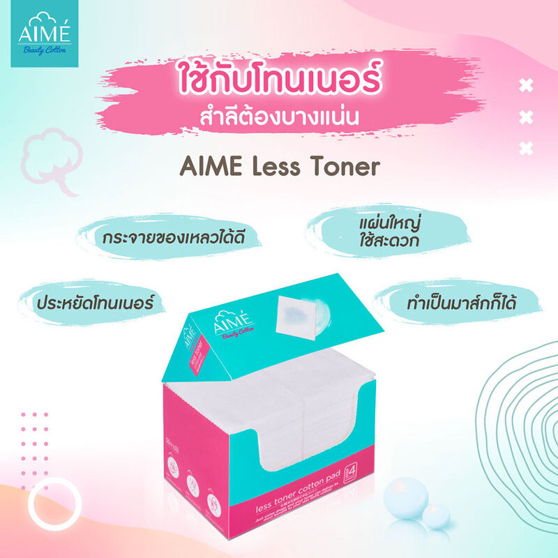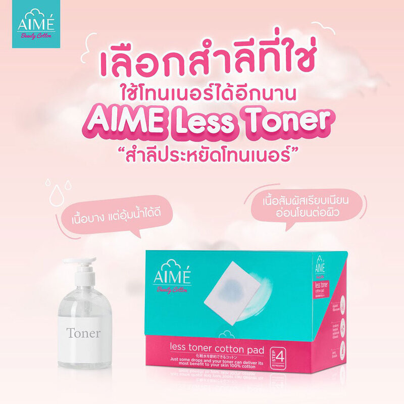 Aime Less Toner Cotton Pad 80pcs สำลีเพื่อการดูแล และทำความสะอาดผิวหน้าโดยฌฉพาะ ผลิตจากใยฝ้ายธรรมชาติ 100% ด้วยเทคโนโลยีมาตรฐานเวิลด์คลาสทำให้ลำสีมีเนื้อละเอียดนุ่มและแน่น สามารถซึมซับโทนเนอร์ได้อย่างมีประสิทธิภาพ และส่งผ่านความชุ่มชื้น สู่การบำรุงผิวหน้าได้อย่างล้ำลึกโดยไม่สิ้นเปลือง• ผลิตจากใยฝ้ายธรรมชาติ 100% เนื้อละเอียดนุ่มและแน่น
