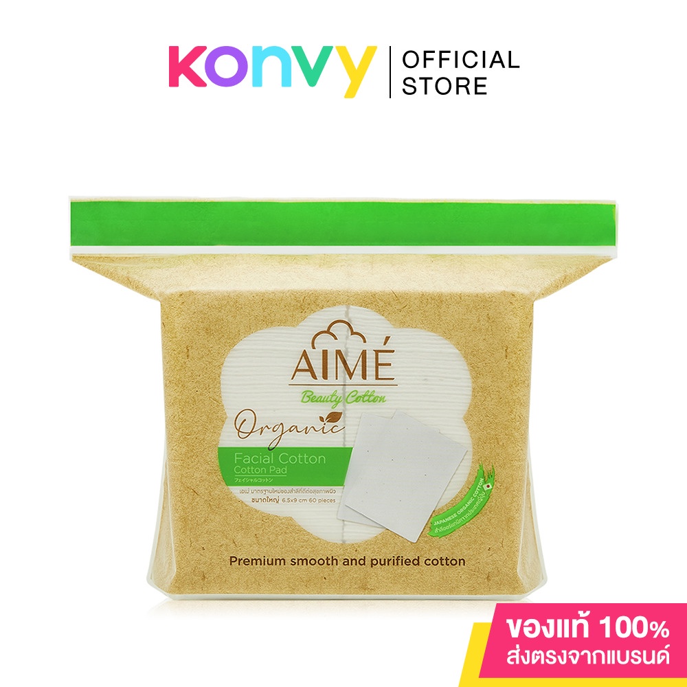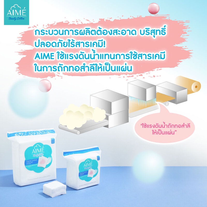 Aime Facial Cotton Pad 90g สำลีผลิตจากใยฝ้ายธรรมชาติ 100% ด้วยเทคโนโลยีมาตรฐานระดับเวิลด์คลาส Hydro Entanglement จึงสะอาด บริสุทธิ์ ปลอดภัย ไร้สารเคมี เนื้อนุ่ม ละเอียด ไม่เป็นขุย ไม่ระคายเคืองแม้ผิวบอบบาง อ่อนโยนต่อผิว ไม่ทำให้เกิดริ้วรอย• ผลิตจากใยฝ้ายธรรมชาติ 100%