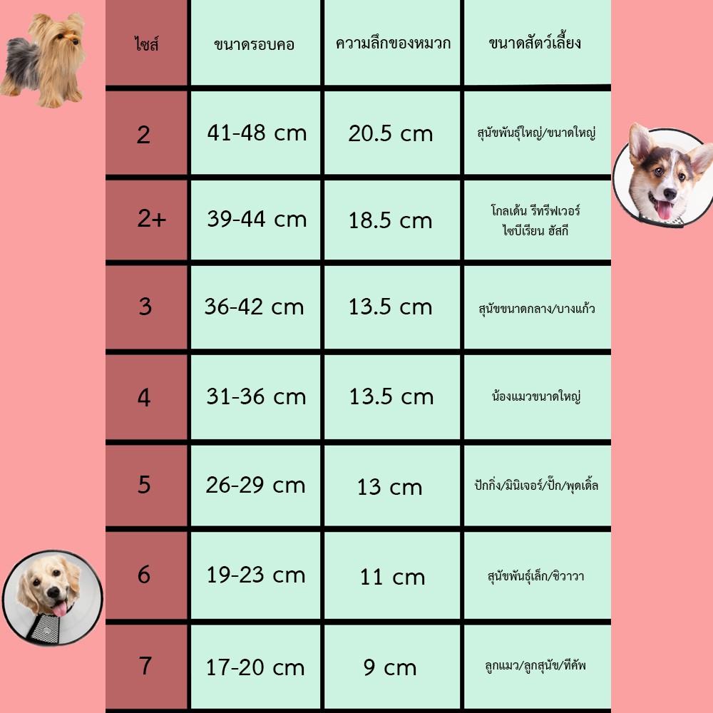 โปรดวัดรอบคอสัตว์เลี้ยงแล้วนำมาเทียบกับขนาดคอลล่า ว่าเหมาะกับขนาดใด