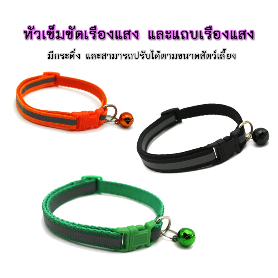ปลอกคอ ลายสายสะท้อนเเสง ตัวล็อกสีเดียวกับสาย อุปกรณ์ของใช้สัตว์เลี้ยง เกรดพรีเมี่ยม⭐️ มี 12 สี ดำ , ฟ้า , ส้ม , ชมพู , เหลือง , เขียวอ่อน , น้ำเงิน , เขียวเรืองแสง , ม่วง , เขียวแก่ , กุหลาบแดง , เเดง