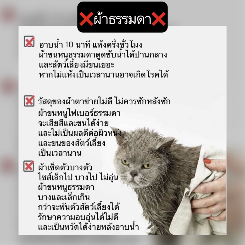 🔶ผ้าหนานุ่มและแน่น สามารถดูดซับน้ำได้ทันที ทำให้ขนสัตว์เลี้ยงแห้งเร็ว และหลีกเลี่ยงความเลอะเทอะ