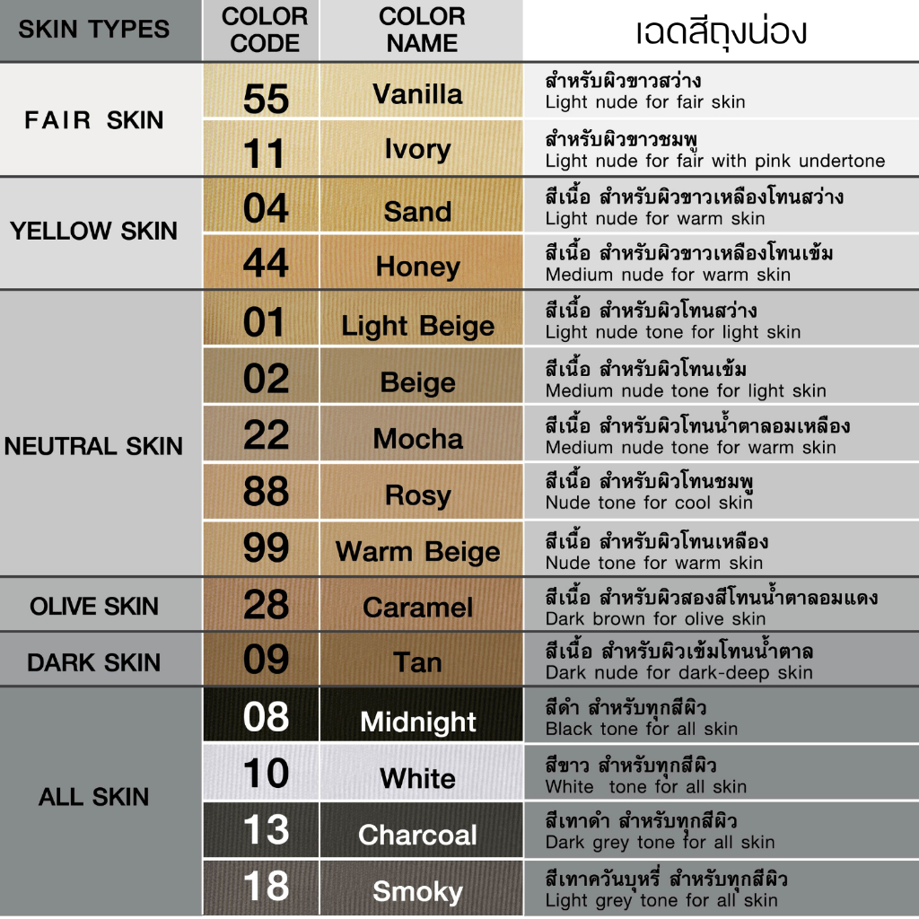 สี 02 สีเนื้อเข้มโทนดังเดิม สำหรับสาวผิวขาวเหลือง