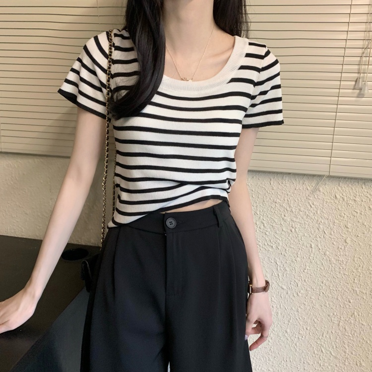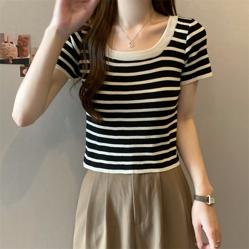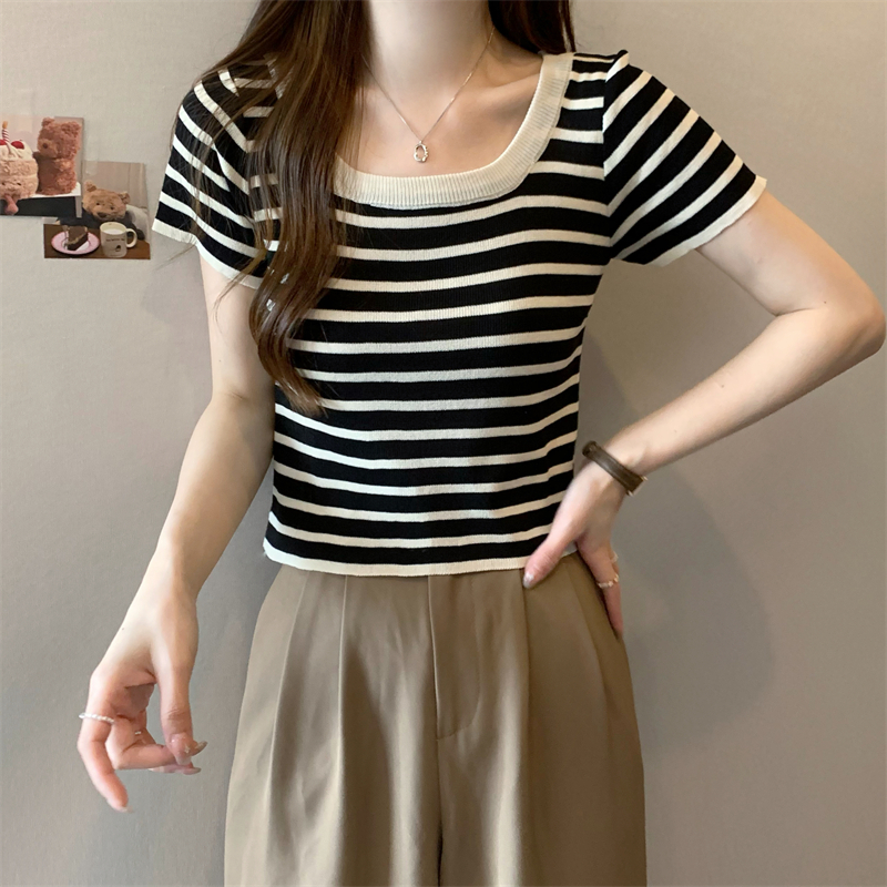 Expogarment áo hở eo áo hở eo vải xẻ ngắn tay vải cotton mỏng co giãn (Tất cả có sẵn 17 màu) 003
