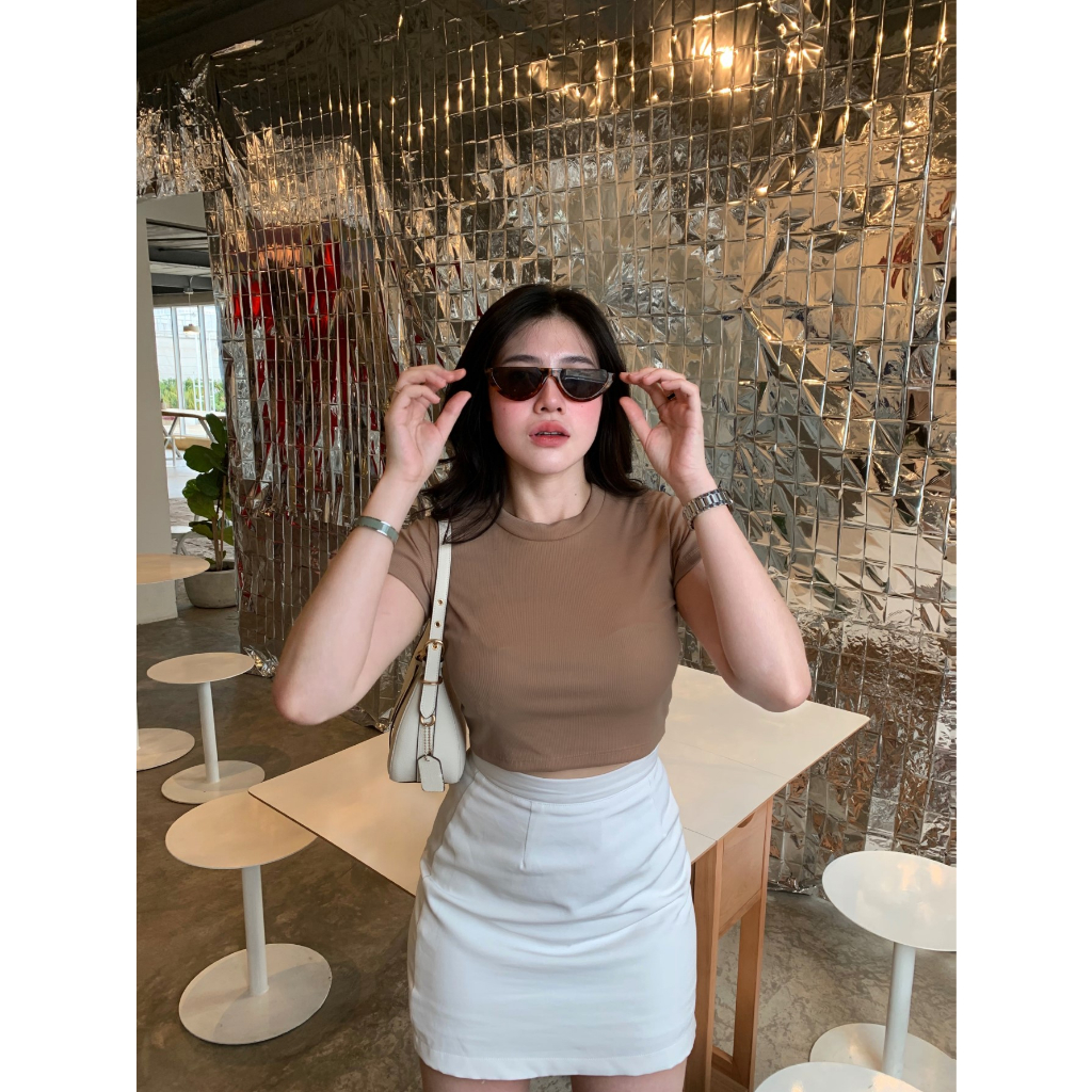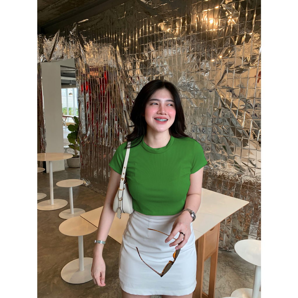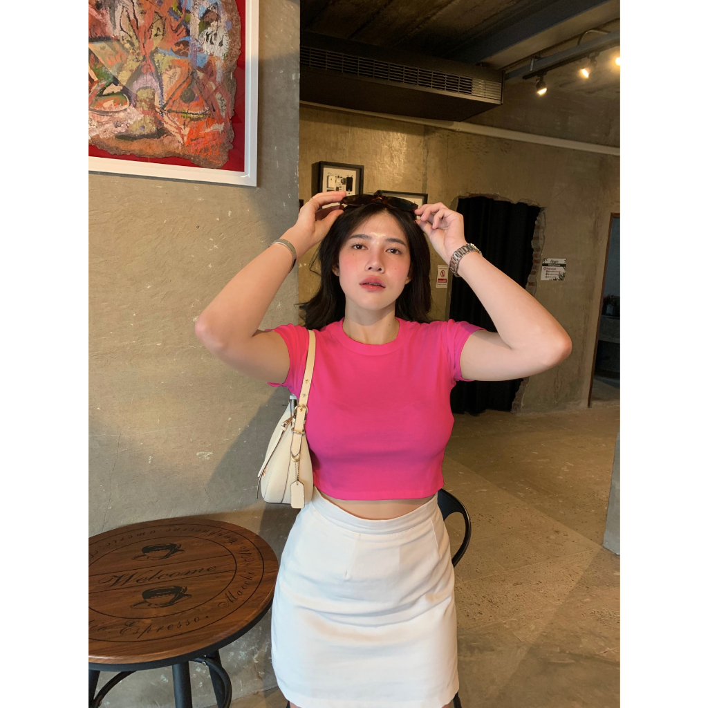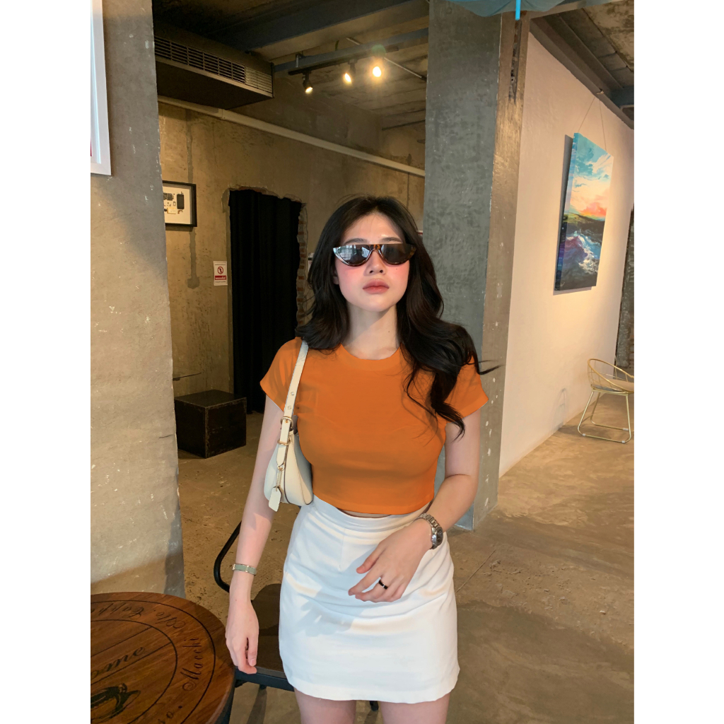 Expogarment áo hở eo áo hở eo vải xẻ ngắn tay vải cotton mỏng co giãn (Tất cả có sẵn 17 màu) 003