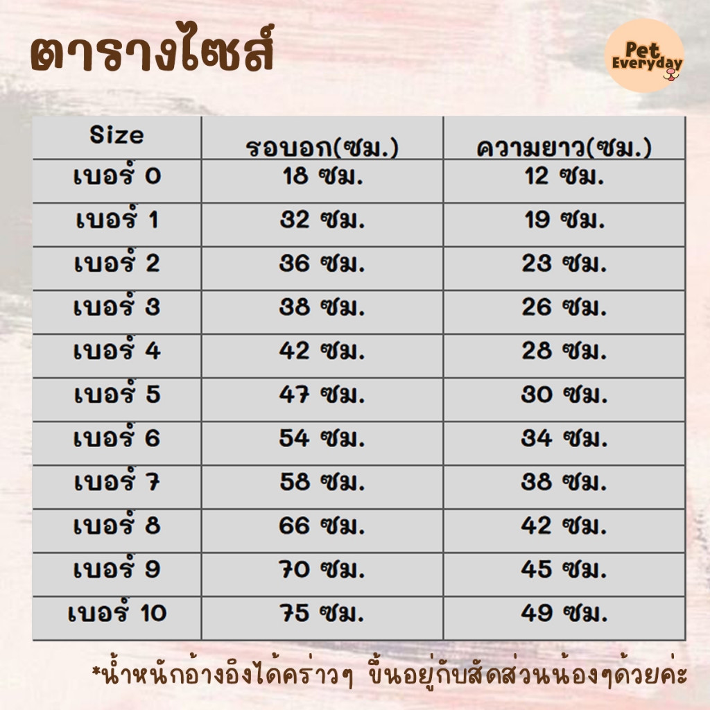 เบอร์ 0 อก 18 ซม. ยาว 12 ซม. **สำหรับน้องแรกเกิด ตัวเล็กมาก