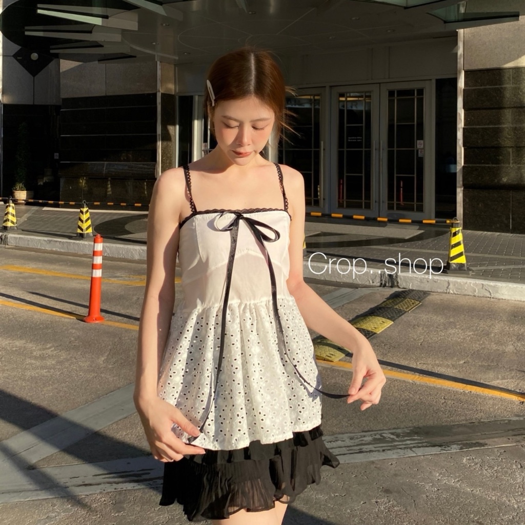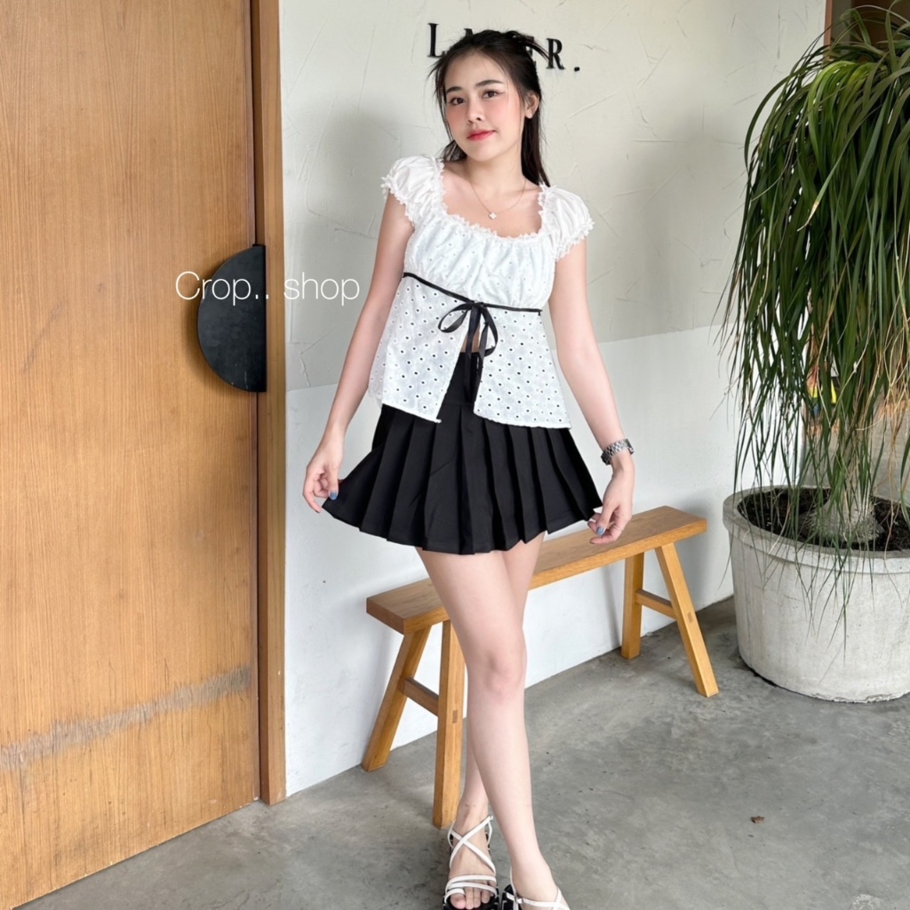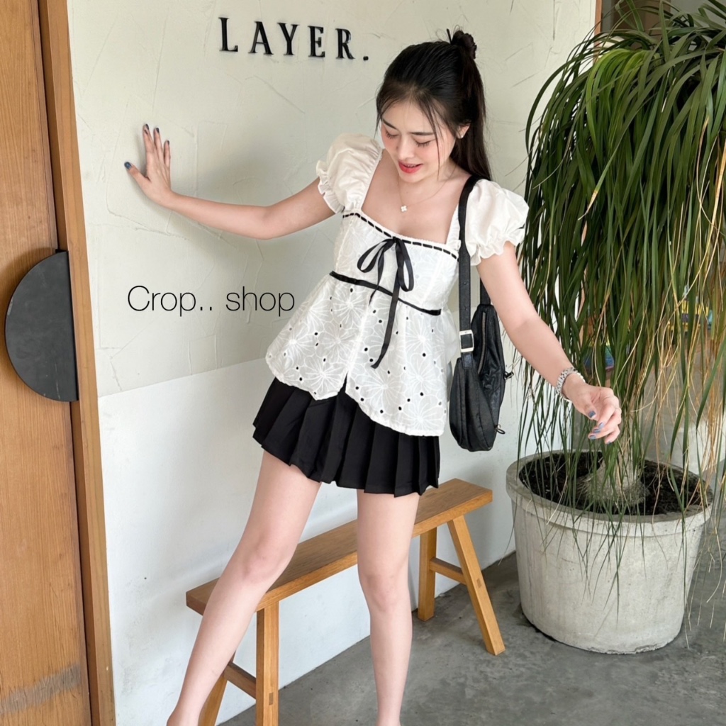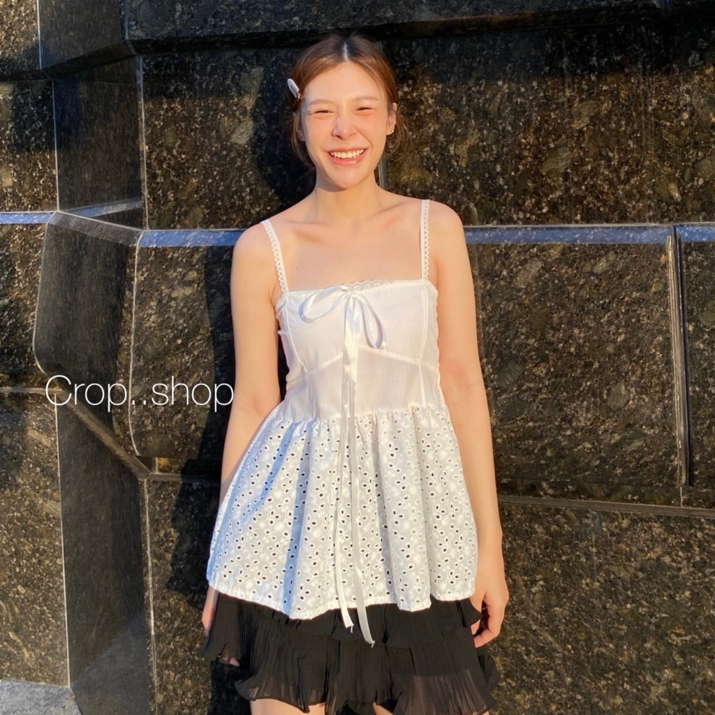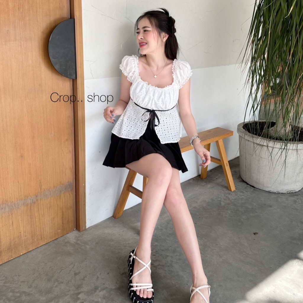 รอบอก 32-36 นิ้วcrop..shop เสื้อสาวชิค (มี2เเบบ) สายแฟห้ามพลาด ผ้าคอตต้อนปักฉลุ คอตต้อนไทย100% ดูแพง น่ารักสุดหรู เชือกรูดได้จริง สวยมาก..