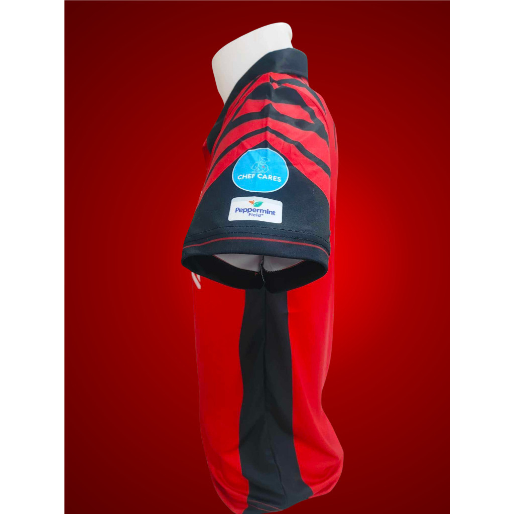 เป็นเสื้อกีฬาพิมพ์ลายทั้งตัว สีไม่ตกไม่ลอก ระบายอากาศได้ดี