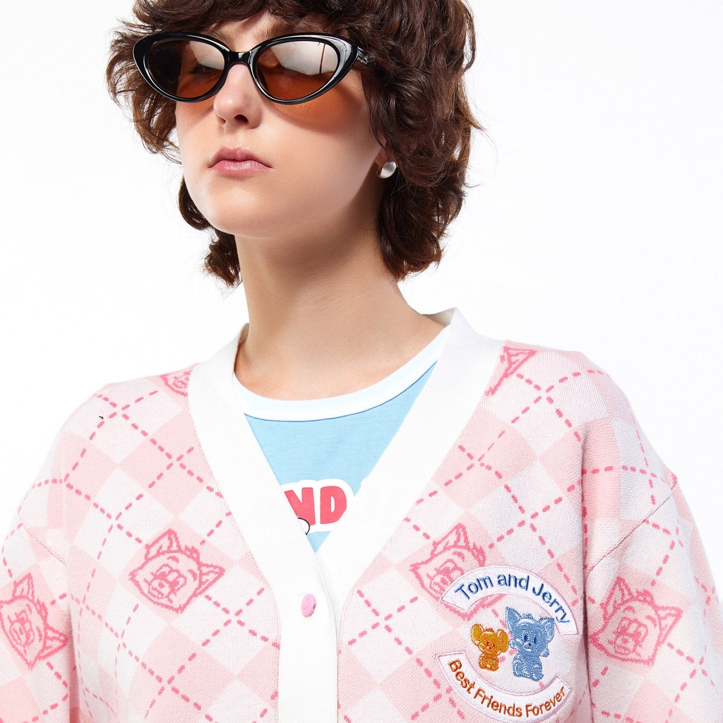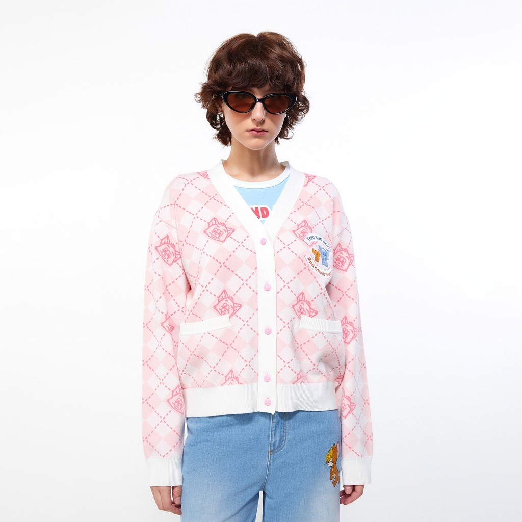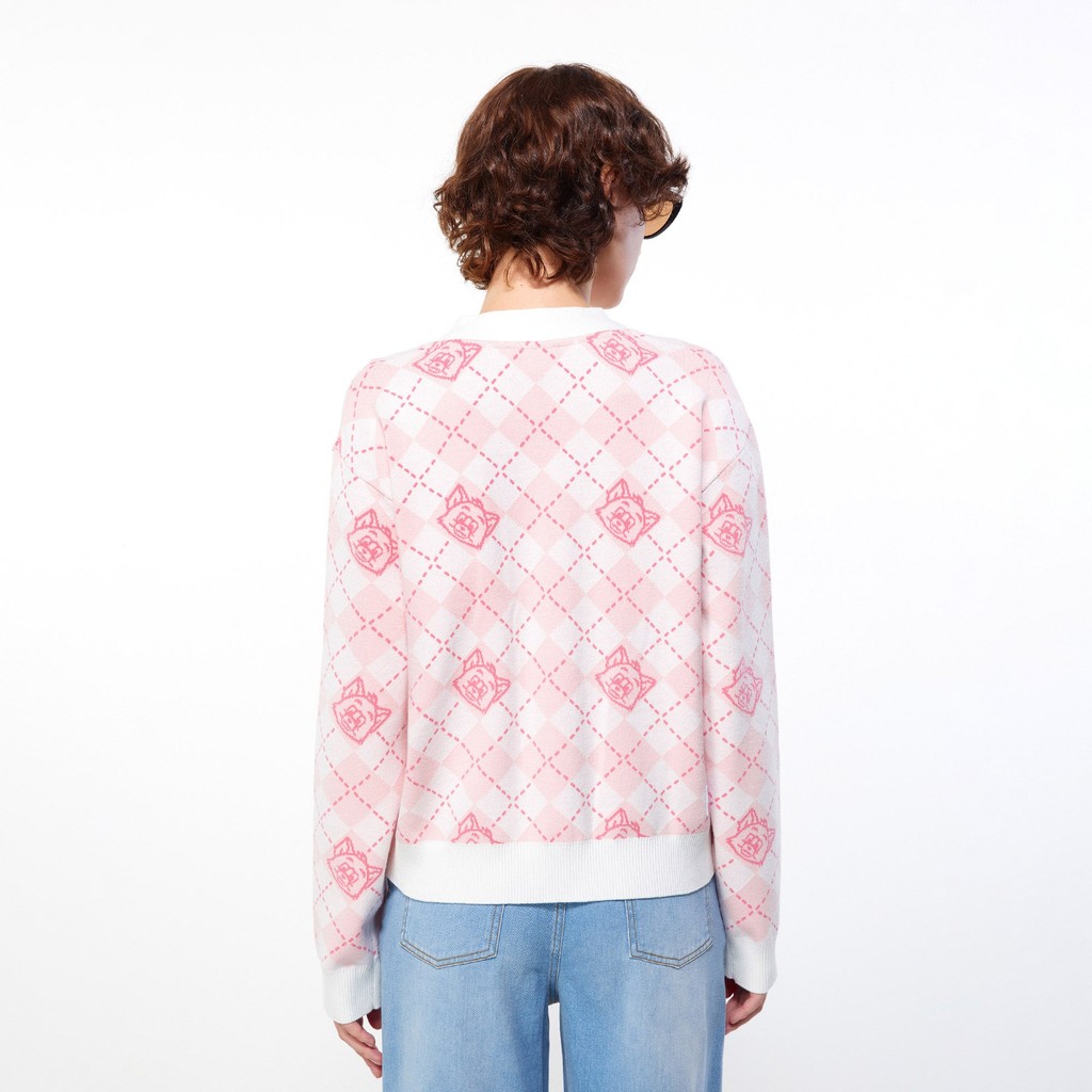 Lovito Áo Cardigan nữ có khuy màu trơn thường ngày lna17155 (Hồng Nóng/Trắng)