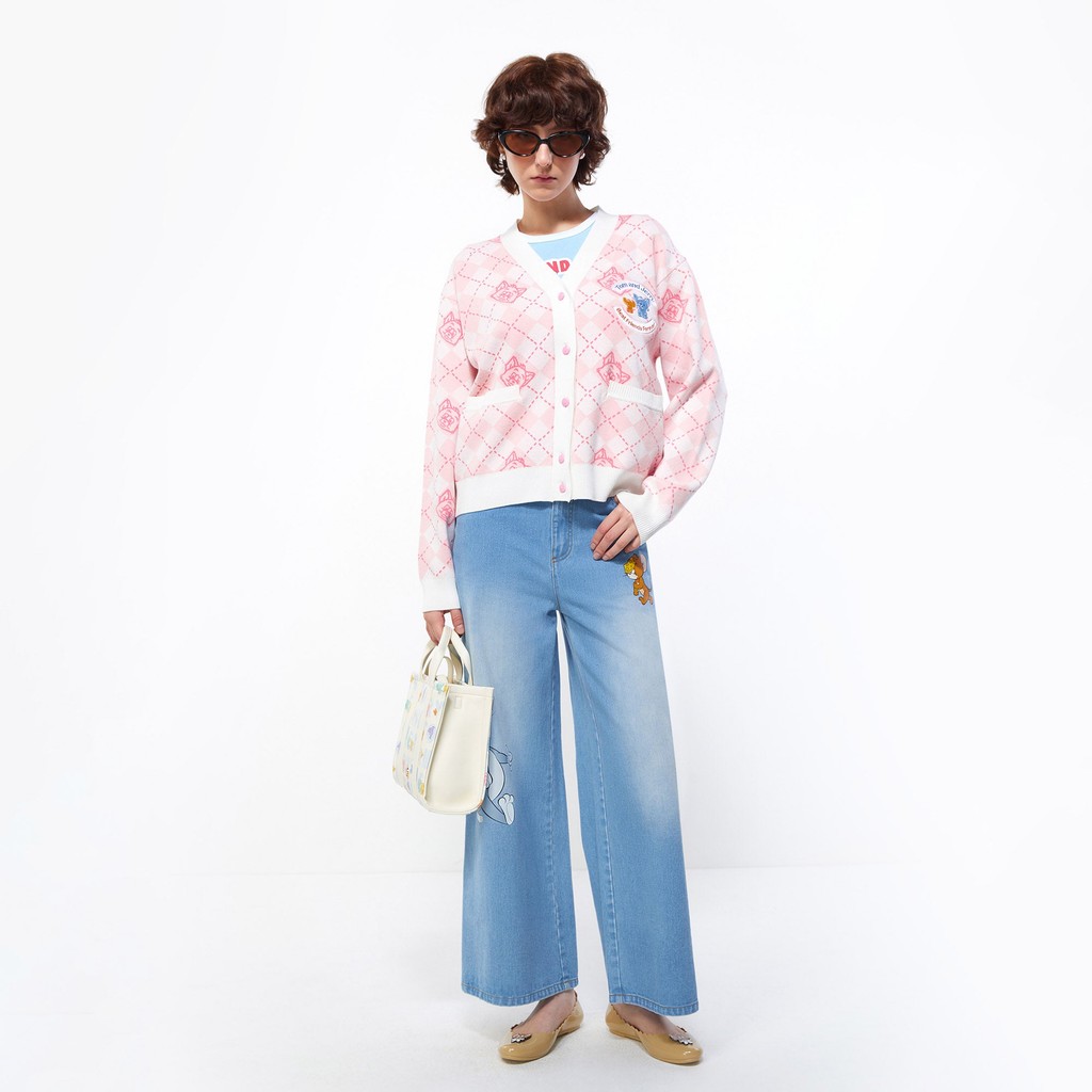 Lovito Áo len cardigan nữ vải gingham thường ngày l36ad068 (Trắng xanh dương)
