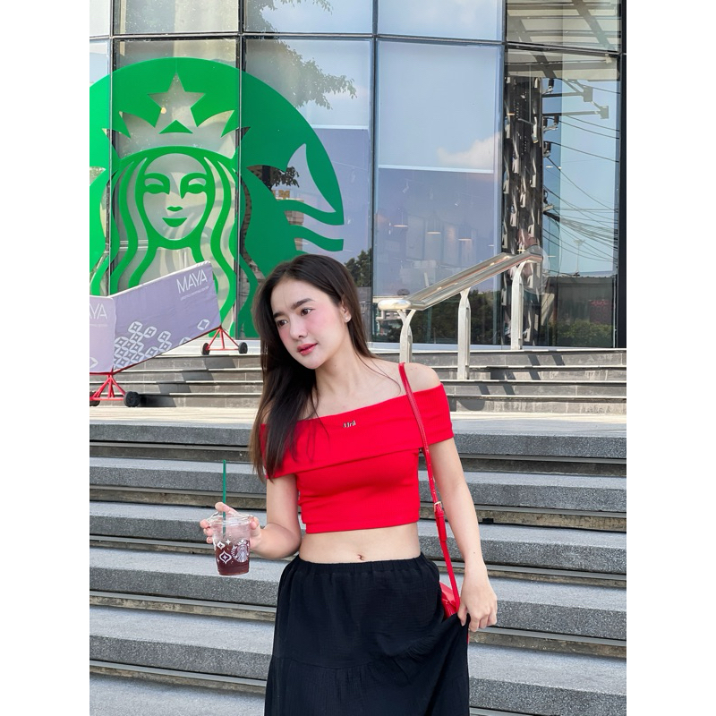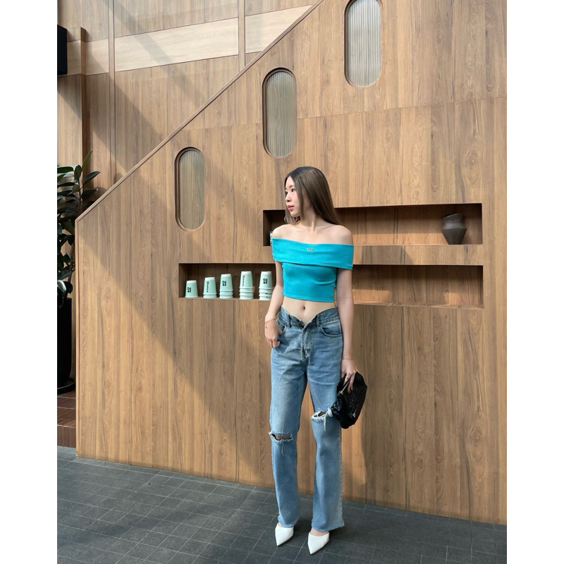 Kimber top 🤎เสื้อเปิดไหล่ เสื้อปาดไหล่