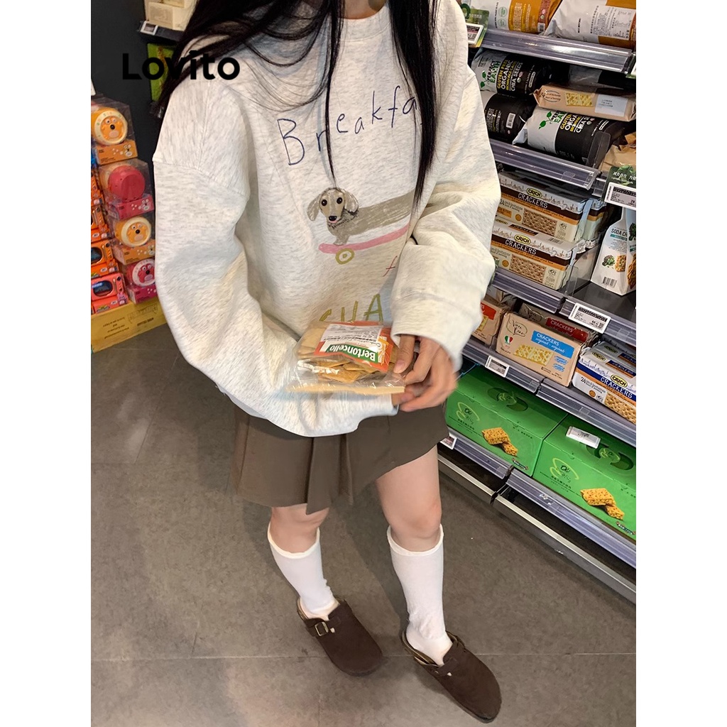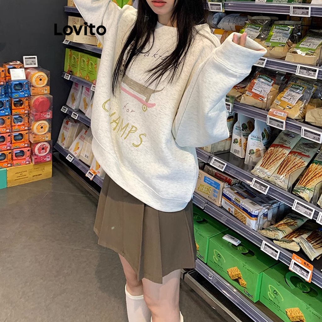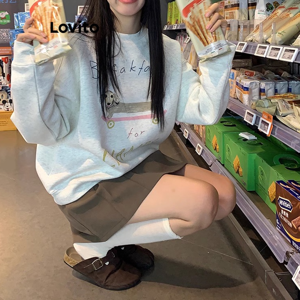 Lovito Áo len nữ in chữ phong cách thường ngày lne39222 (Hồng nhạt/Tím Nhạt/Xanh nhạt/Xanh nhạt/Xám)