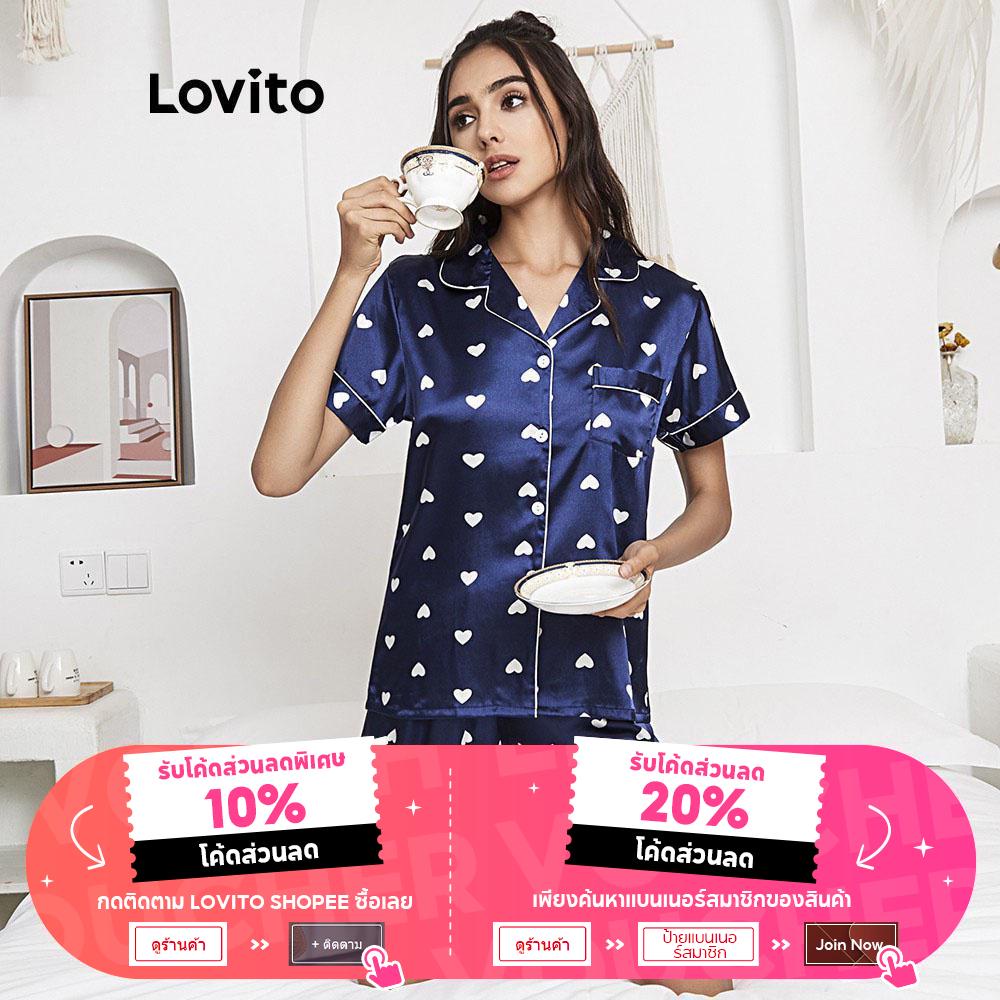 Lovito đồ ngủ nữ phong cách hoạt hình thường ngày lna24137 (màu xanh dương)