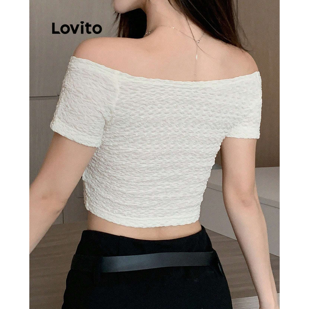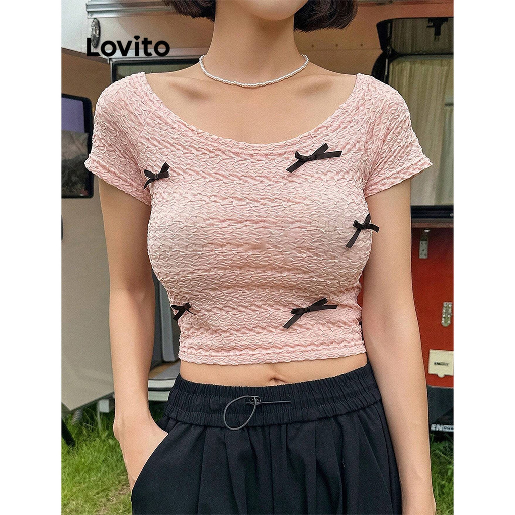 Áo thun màu trơn thường ngày chữ thập cho nữ lovito l45ad003 (Nhiều màu)