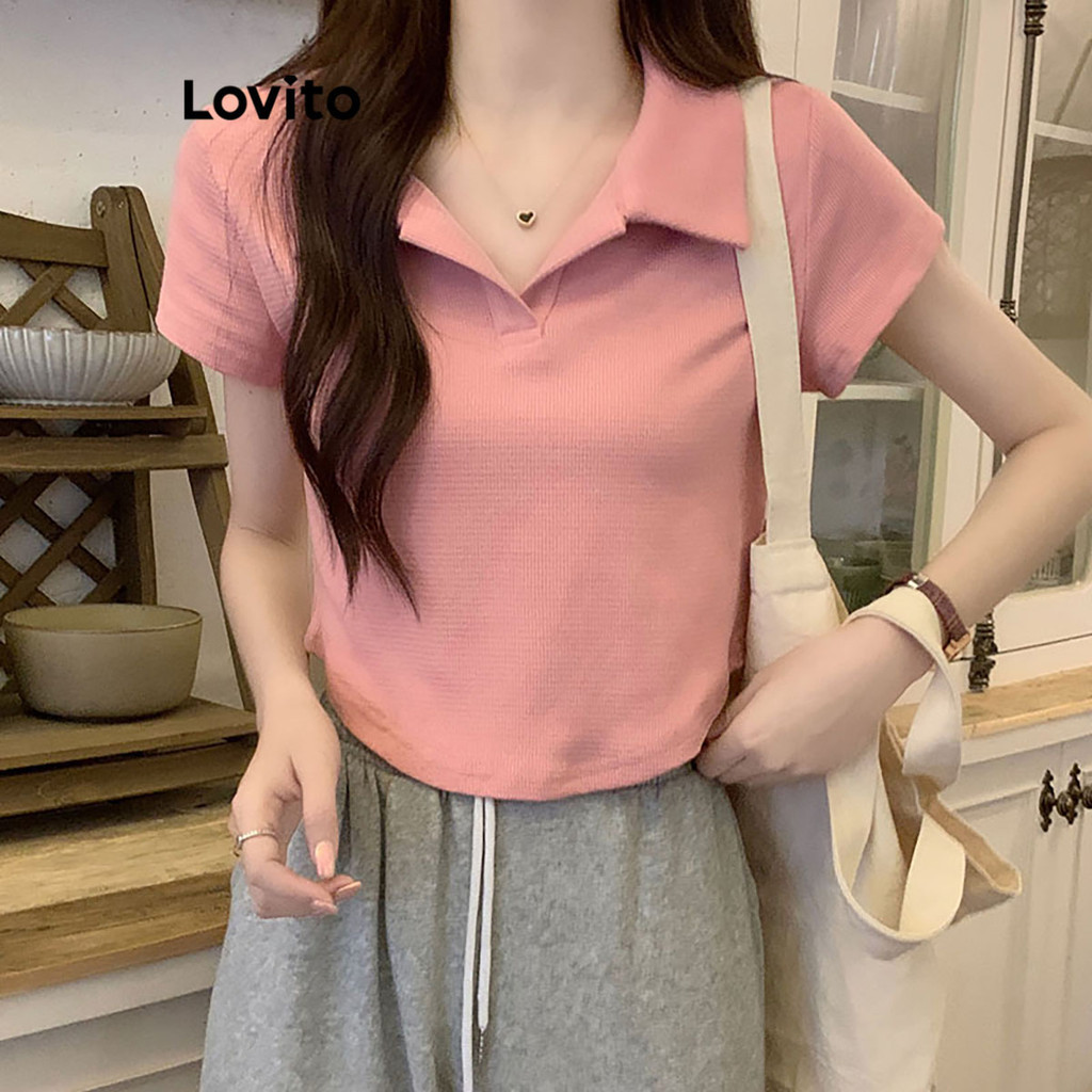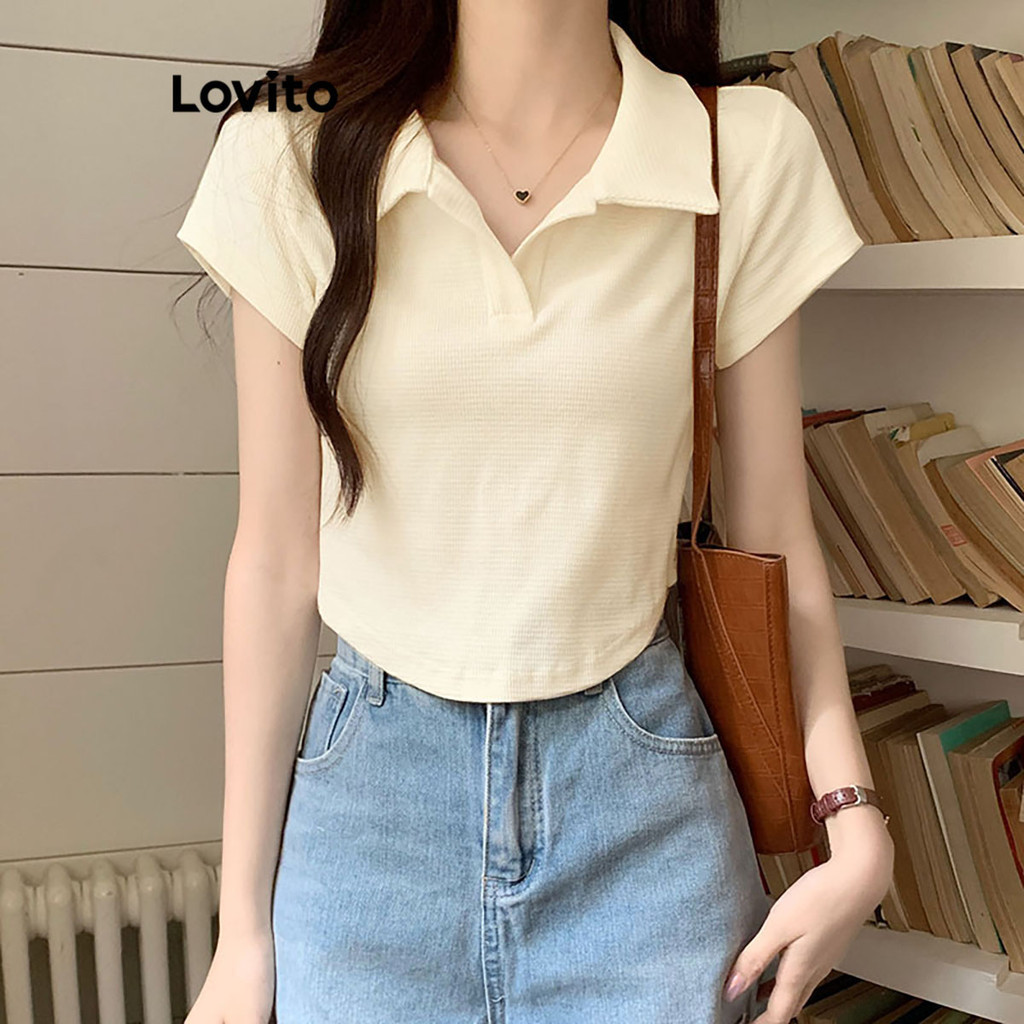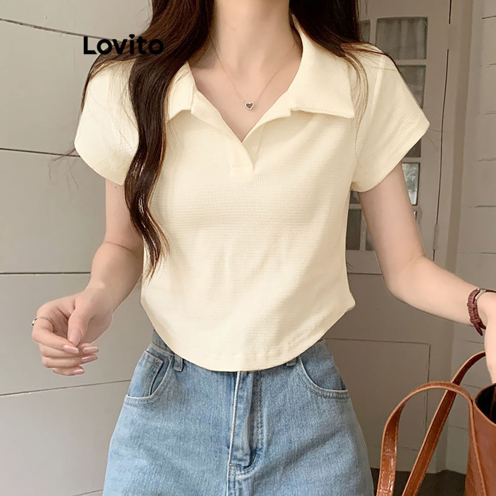 【Celep】lovito Áo polo dáng rộng màu trơn thường ngày l20d1144 (Màu Trắng)