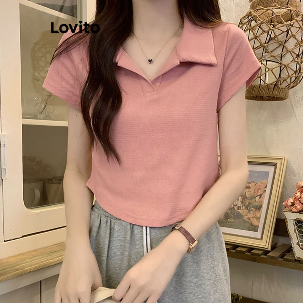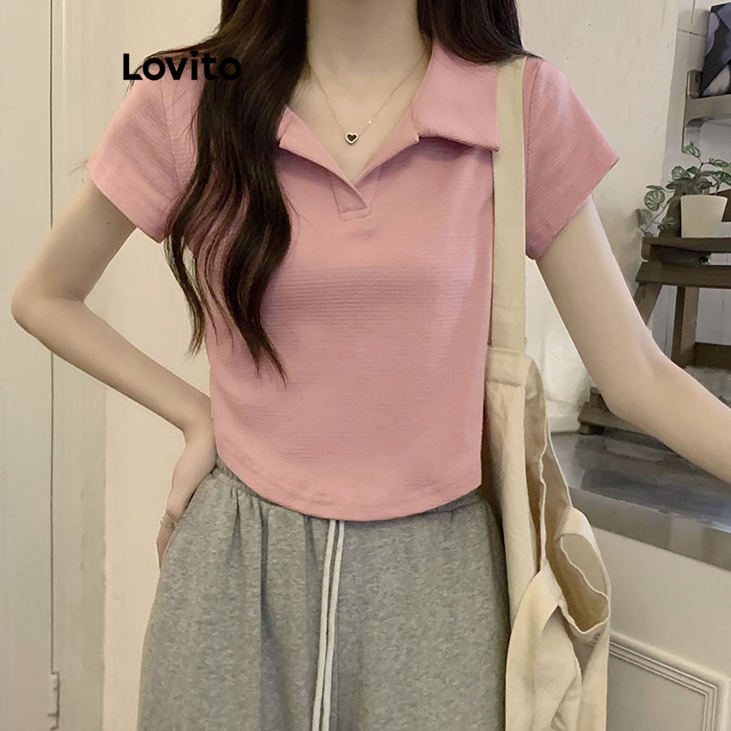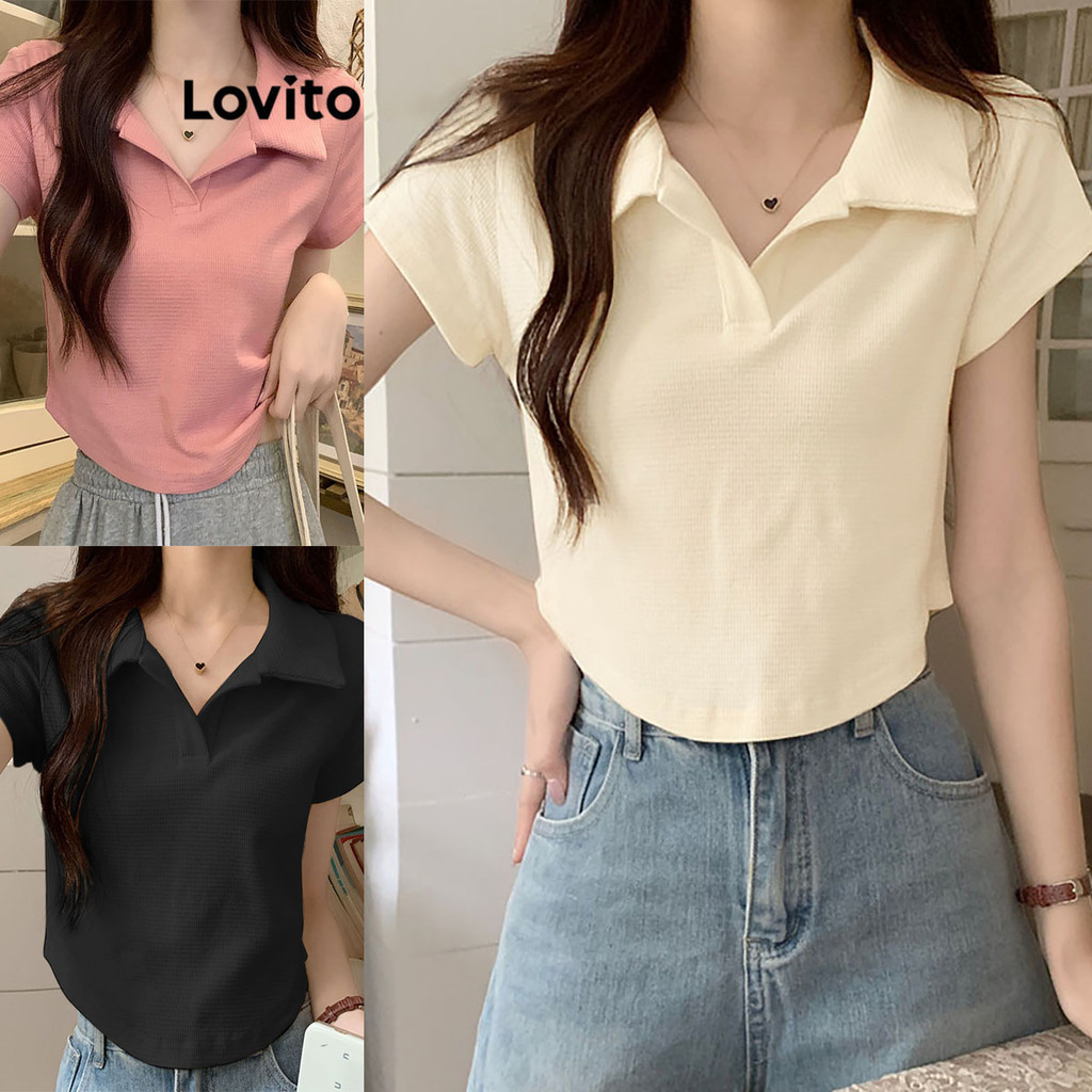 【Celep】lovito Áo polo dáng rộng màu trơn thường ngày l20d1144 (Màu Trắng)
