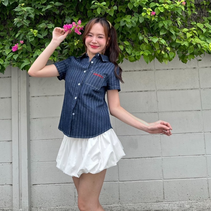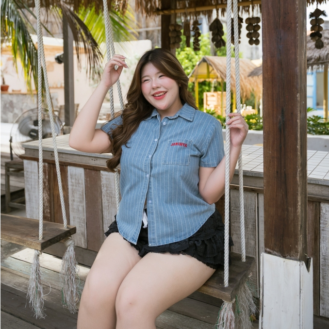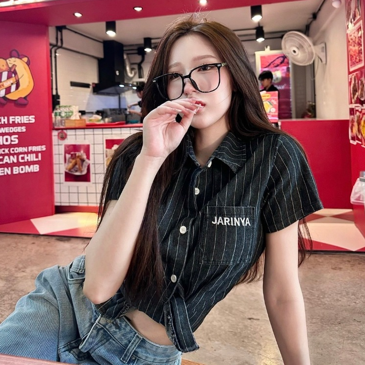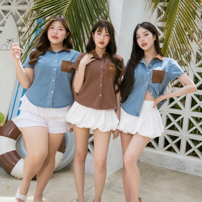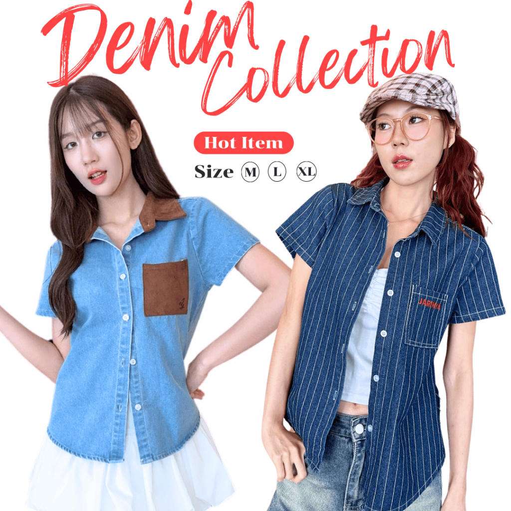 เสื้อเชิ้ตยีนส์แต่งกระเป๋าปัก JARINYA เนื้อผ้าดี ทรงสวย