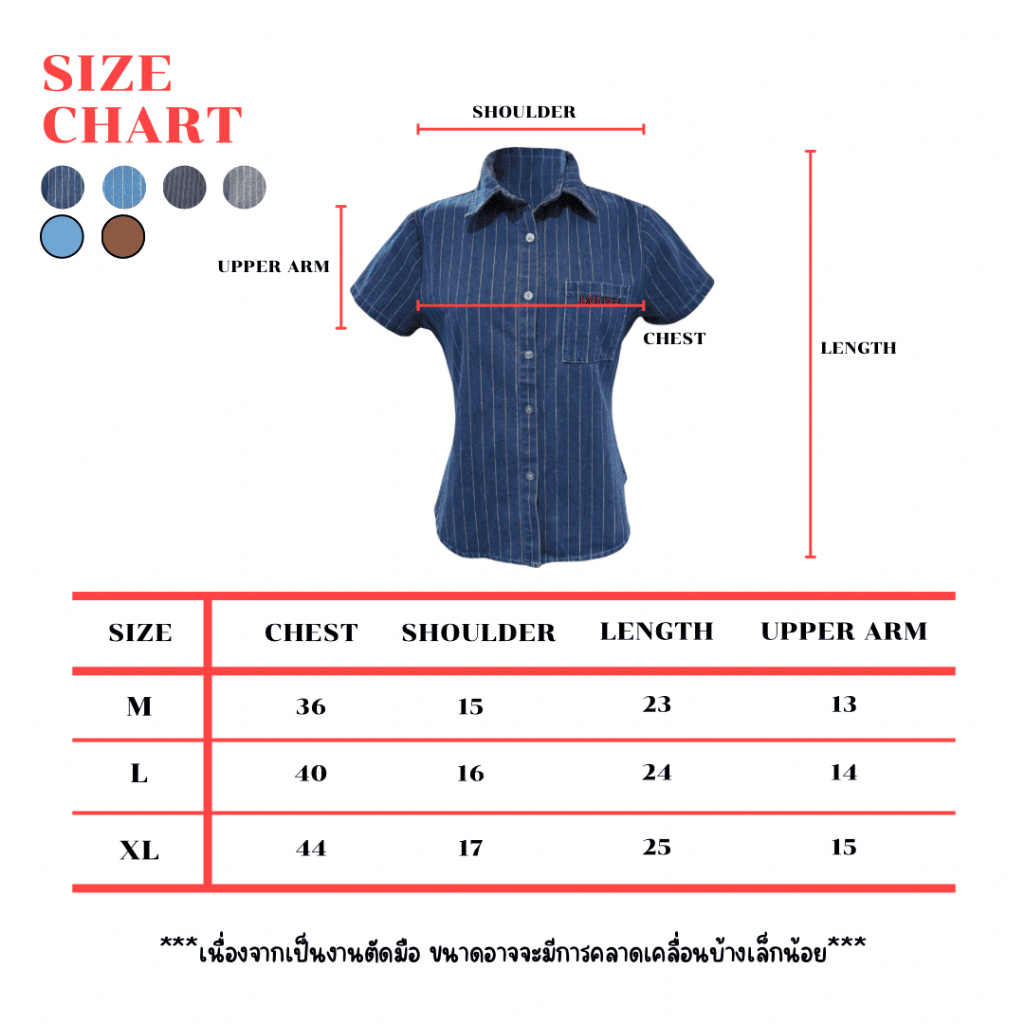 ความยาวเสื้ออาจมีคลาดเคลื่อนเล็กน้อยตามที่แจ้ง