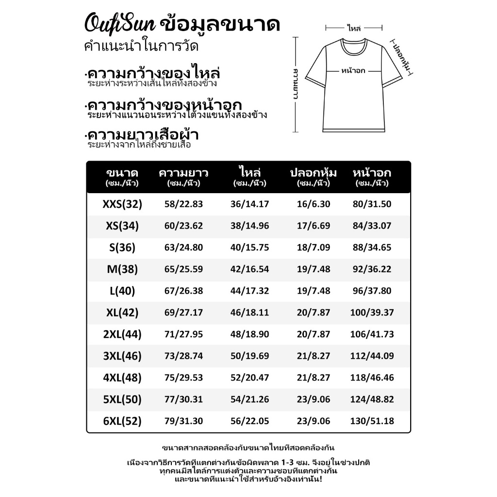 เส้นขอบฟ้า ยาว 3XL: ยาว 31 นิ้ว. แขนยาว 10 นิ้ว. รอบอก 50 นิ้ว. ไหล่กว้าง 20 นิ้ว. น้ำหนักตัว 86-95 กิโลกรัมน้ำหนักตัว 86-95 กิโลกรัม
