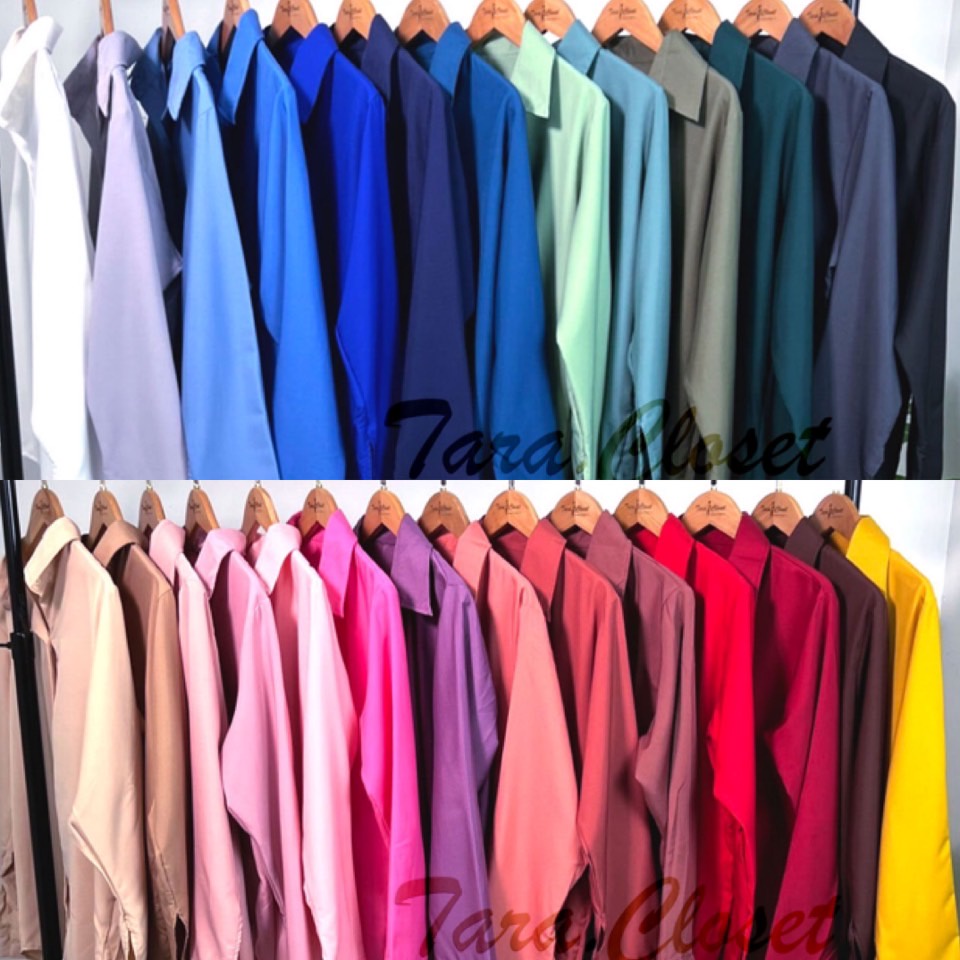 It022 áo Tara đủ cỡ Áo Sơ Mi Cổ Dài Tay hơn 20 màu vải lụa Ý cổ điển phổ biến không dày lắm, thoải mái khi mặc.