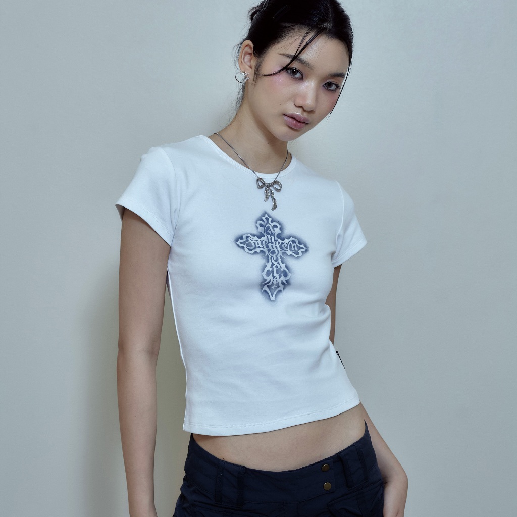 เสื้อยืดแขนสั้นรุ่นนี้ผ้าไม่บางนะคะรัดรูปค่ะใส่แล้วหุ่นดีสุดๆ ลาย Cross เป็นลายหลักของคอลเลคชั่นนี้เลย เรียบๆใส่ง่าย (นางแบบใส่ size S)