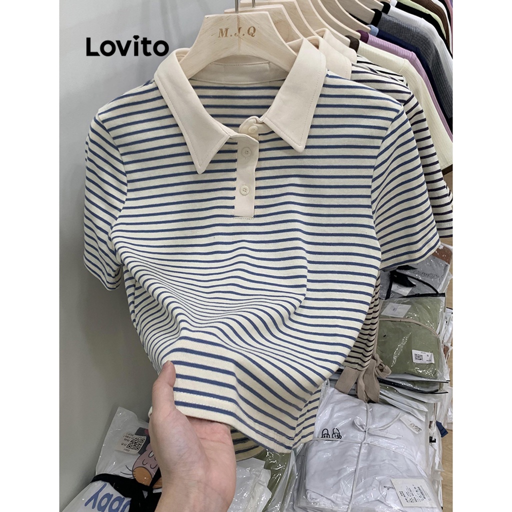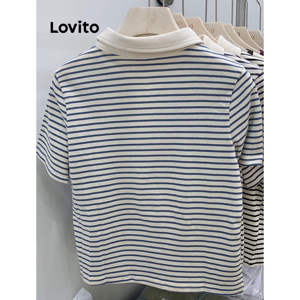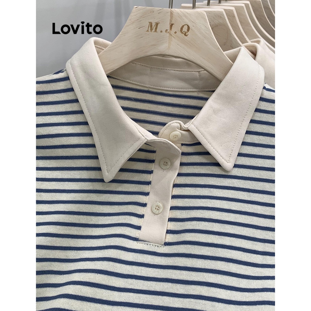 Lovito áo cánh sọc Polo ve áo phong cách thường ngày cho Nữ l33ad062 (màu xanh dương)