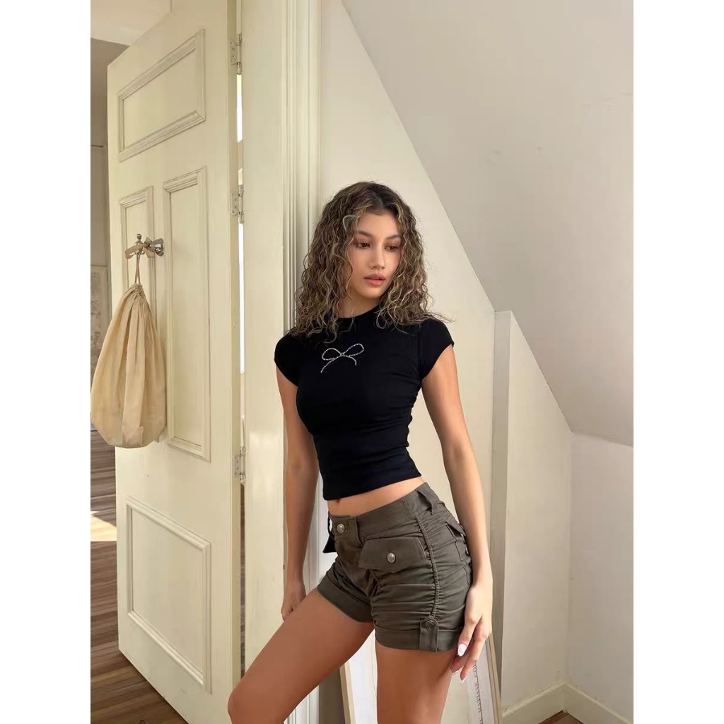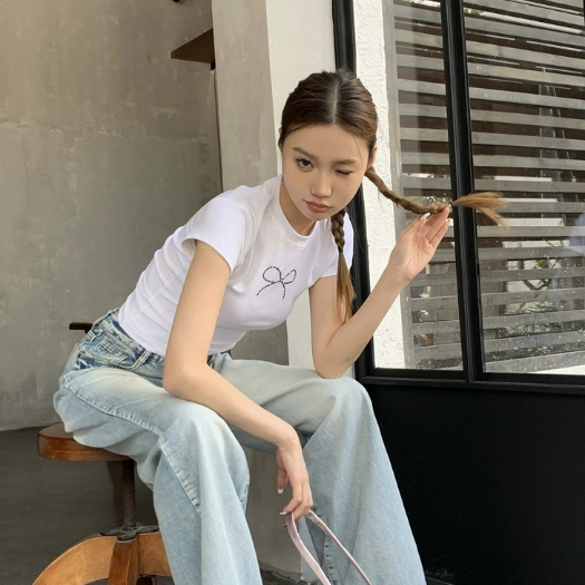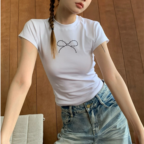 Áo thun trẻ em áo thun nữ in hình nơ Kim Cương Dễ Thương