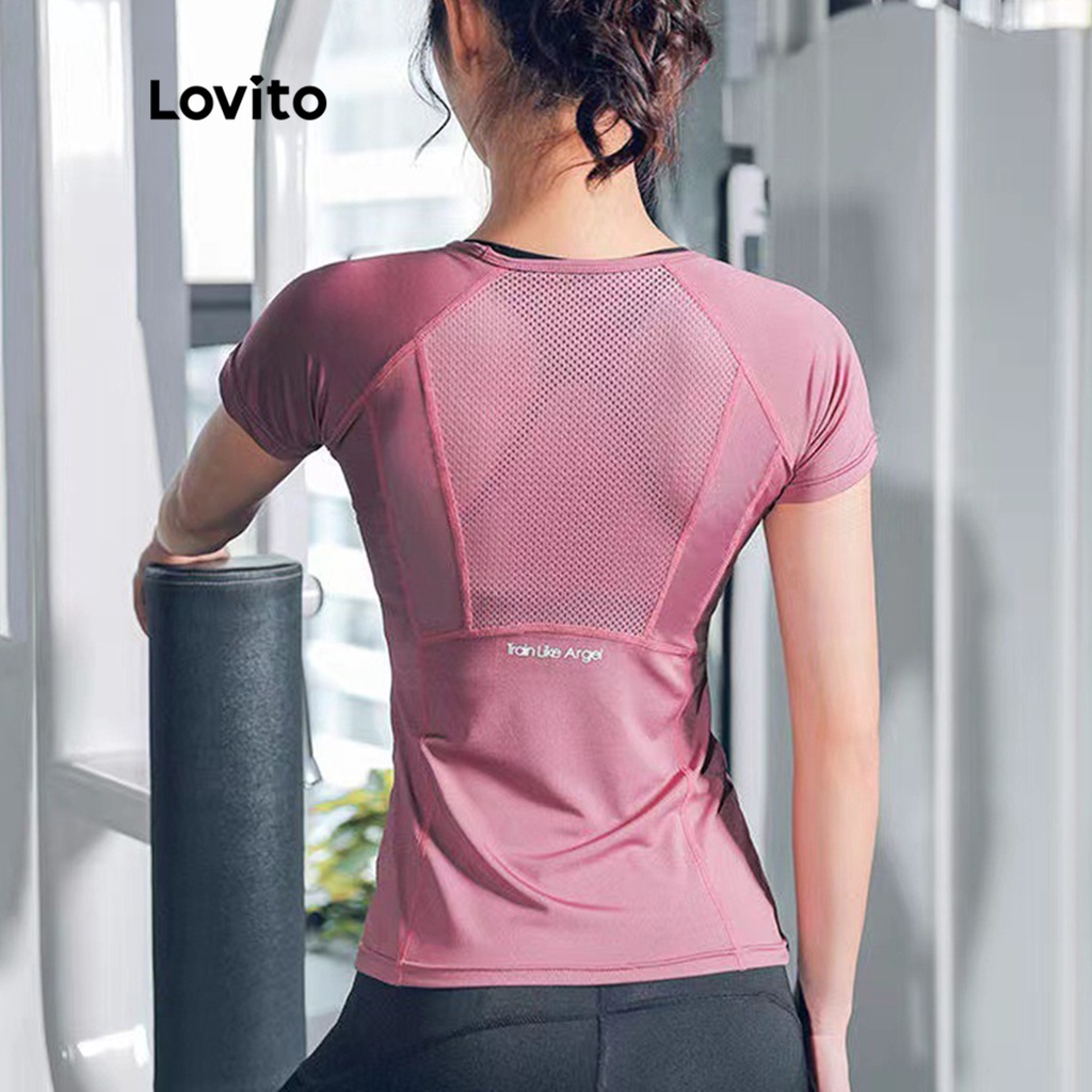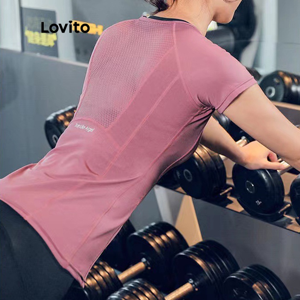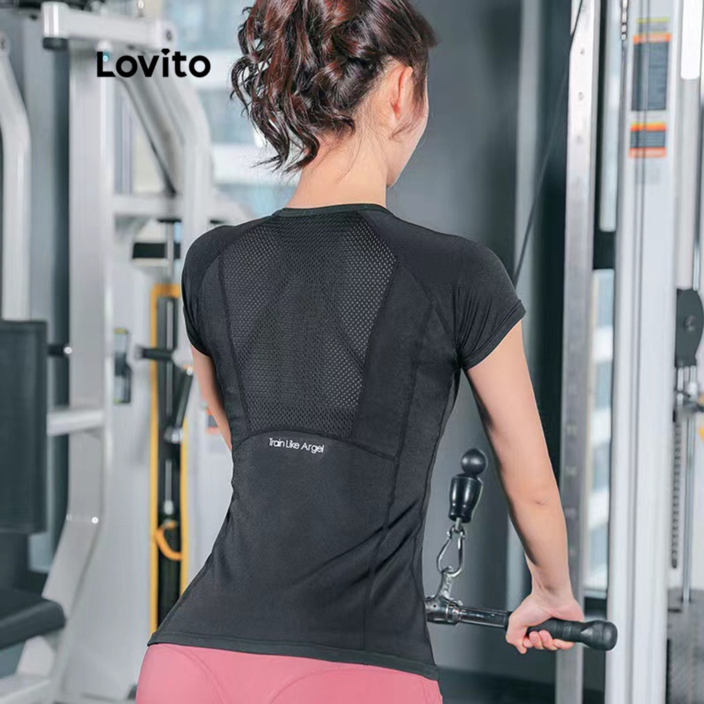 Lovito quần áo tập yoga dáng ôm lưới thấm mồ hôi thoáng khí cho nữ l31ed030 (Màu Đen)
