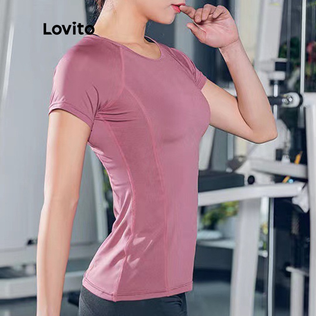 Lovito Áo thể thao nữ xẻ màu trơn lna13054 (Xám nhạt/Hồng/Xanh dương)