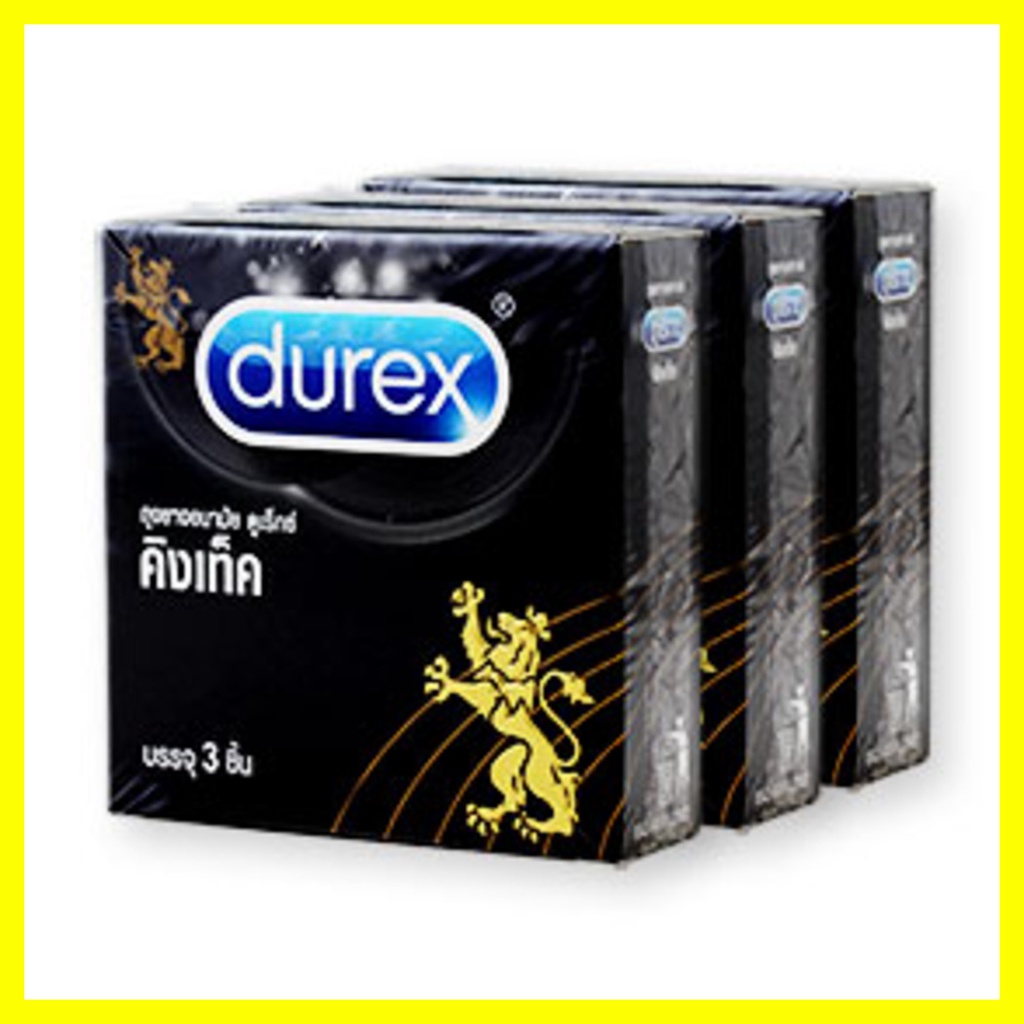 [แพ็คสาม] Durex Kingtex Condom 49mm[3pcs]ถุงยางอนามัยชนิดผิวเรียบขนาดมาตรฐาน 49ม.ม. ผลิตจากน้ำยางธรรมชาติคุณภาพเยี่ยมเจือสีชมพู พร้อมเคลือบสารหล่อลื่นสูตรพิเศษของ Durex กระชับ สะอาด ปลอดภัย เพิ่มความมั่นใจให้ชีวิตรักแบบเต็มร้อย• ถุงยางขนาดมาตรฐาน 49 ม.ม. หนา 0.06 ม.ม.